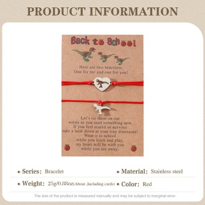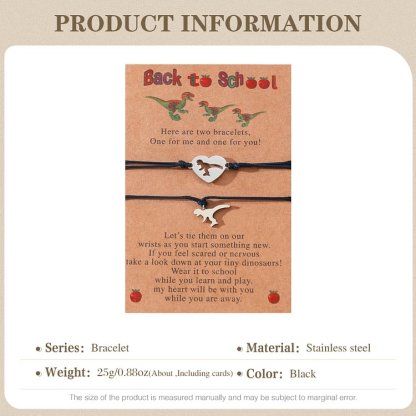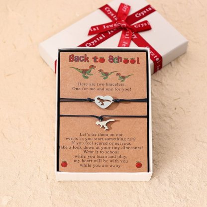 Back to School Matching Wish Dinosaur Bracelets Set for Women Teen Girls Boys