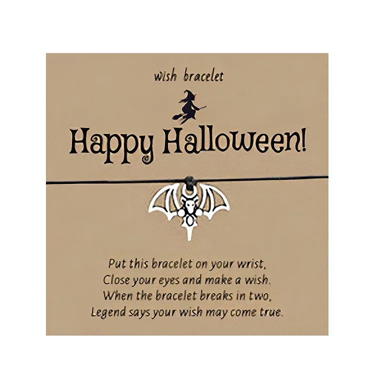 Bat Bracelet Set-Happy Halloween Pumpkin Bracelet Wish Bracelet Set, Stainless Steel Adjustable Bracelets Halloween Gift for Kids Family Friends