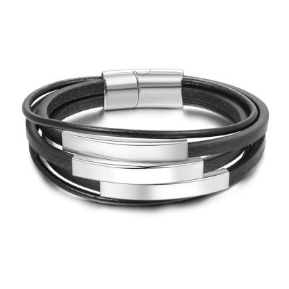 Customized Multiple Layers Bracelets for Men Personalized Engraved Bracelet ID Wristband