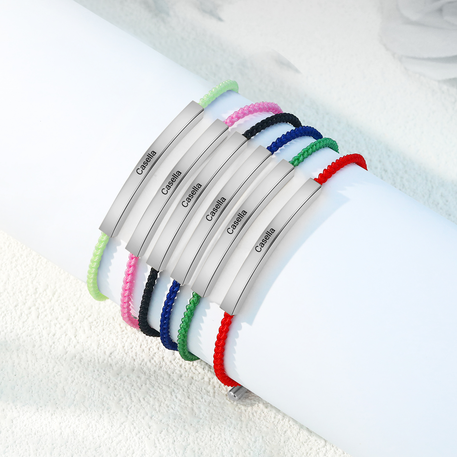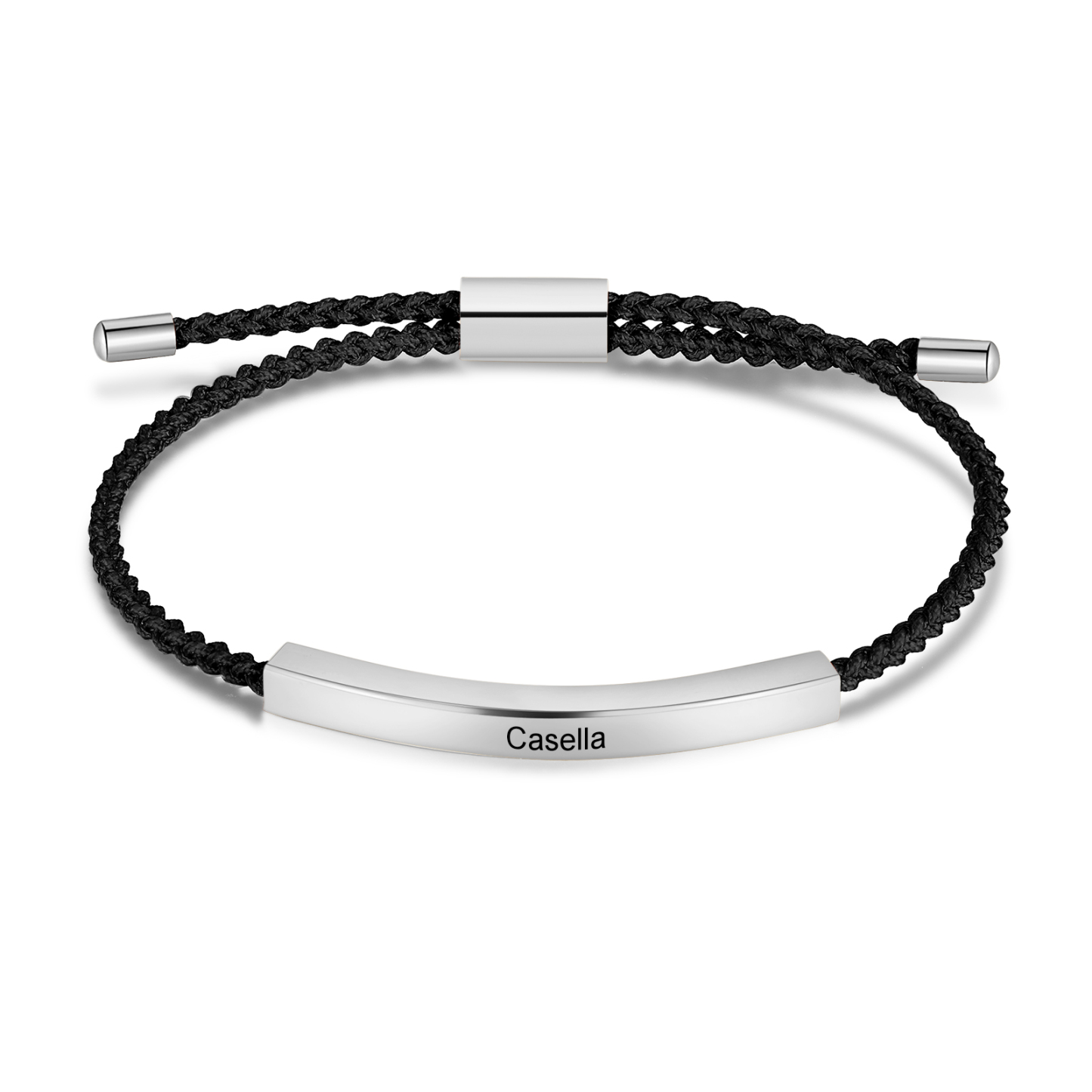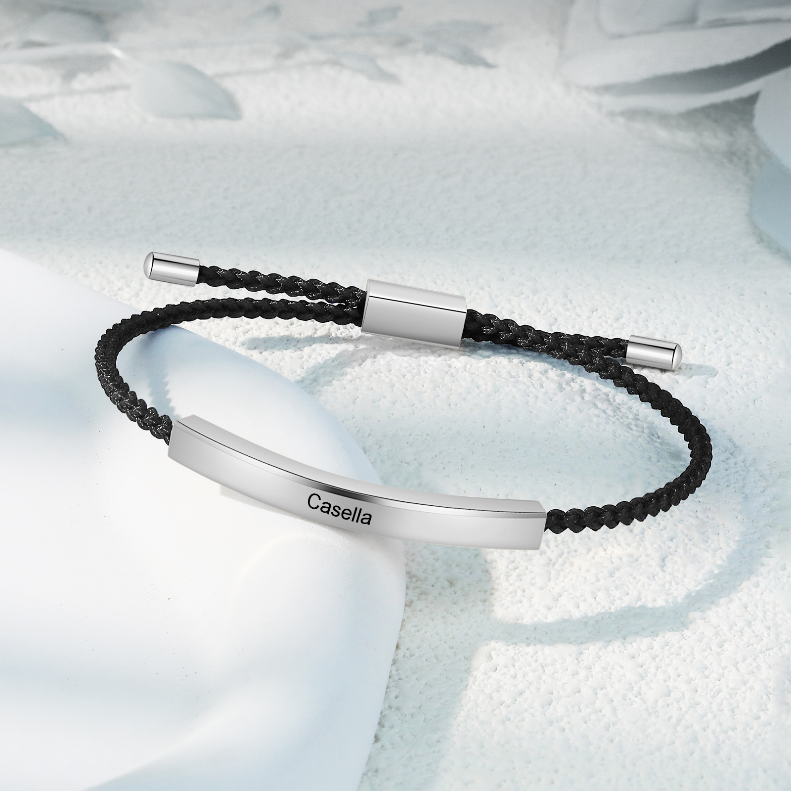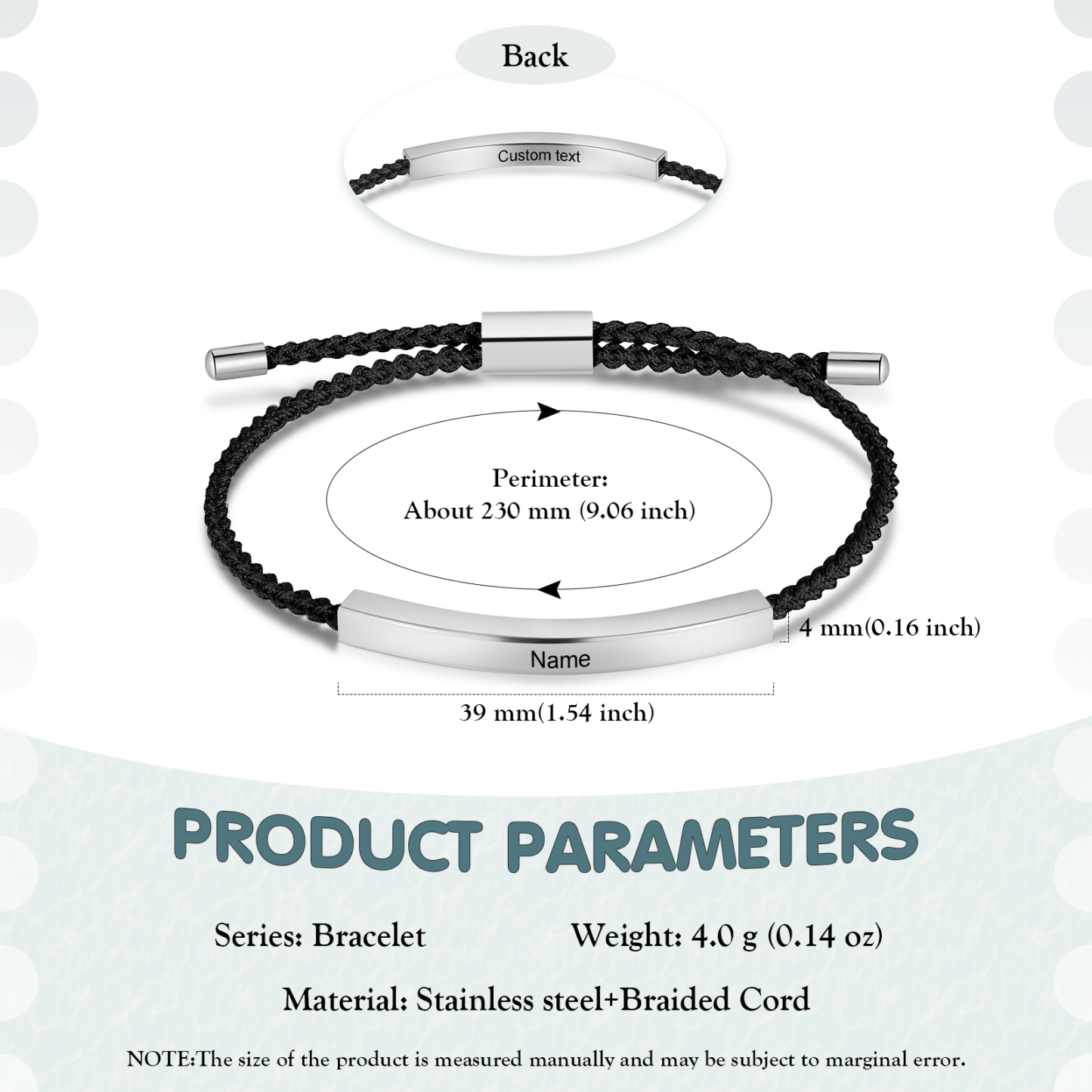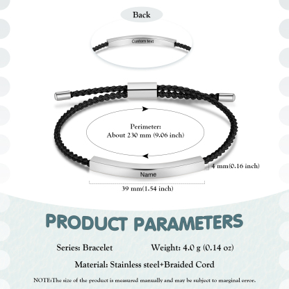 Black+Silver-Personalized Stainless Steel Adjustable Bracelet, Custom Name Braided Bracelet for Her/Him