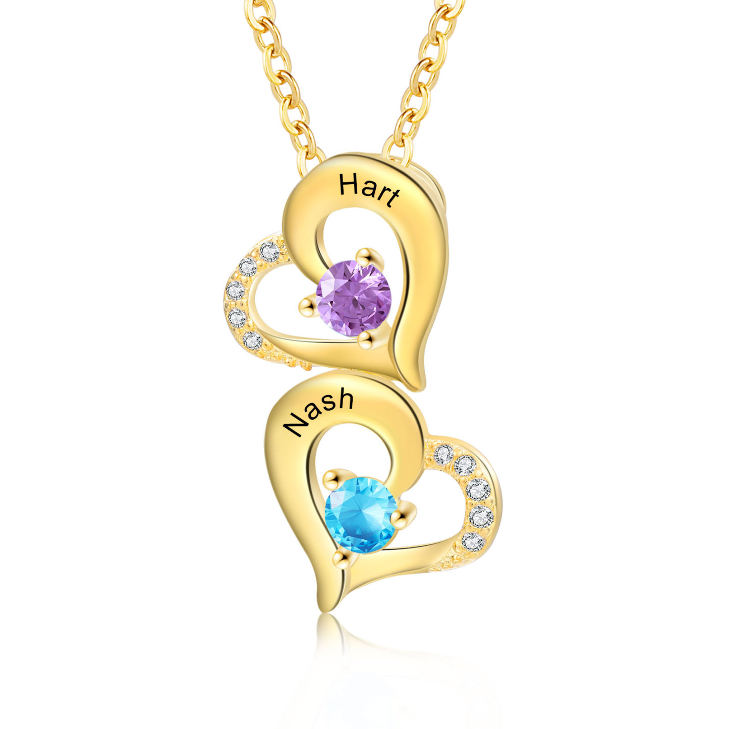 2 Names - Personalized Heart Necklace Custom Birthstone and Name Necklace Gifts for Her