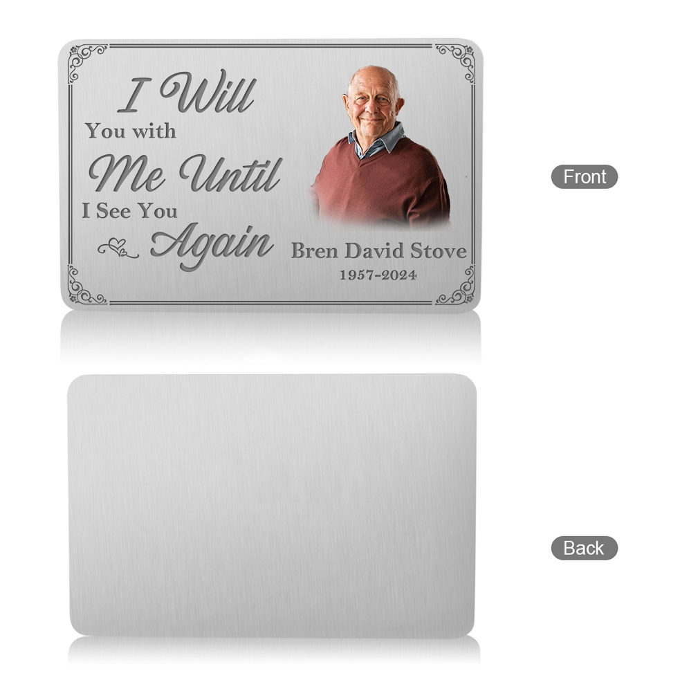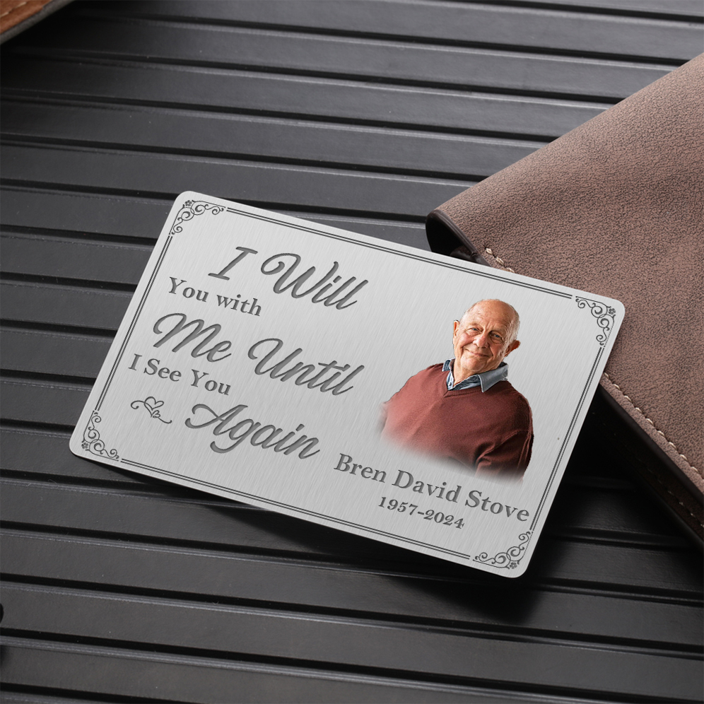 Custom Photo and Text -I Will Carry You With Me Until I See You Again - Metal Wallet Card, Memorial Gift For Loss Of Loved One, Sympathy Gift
