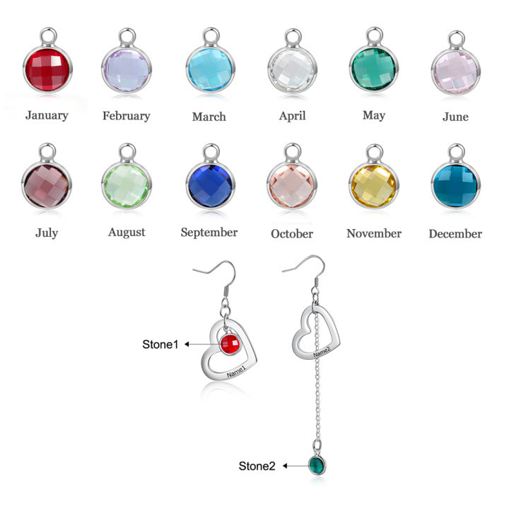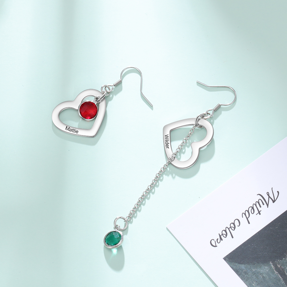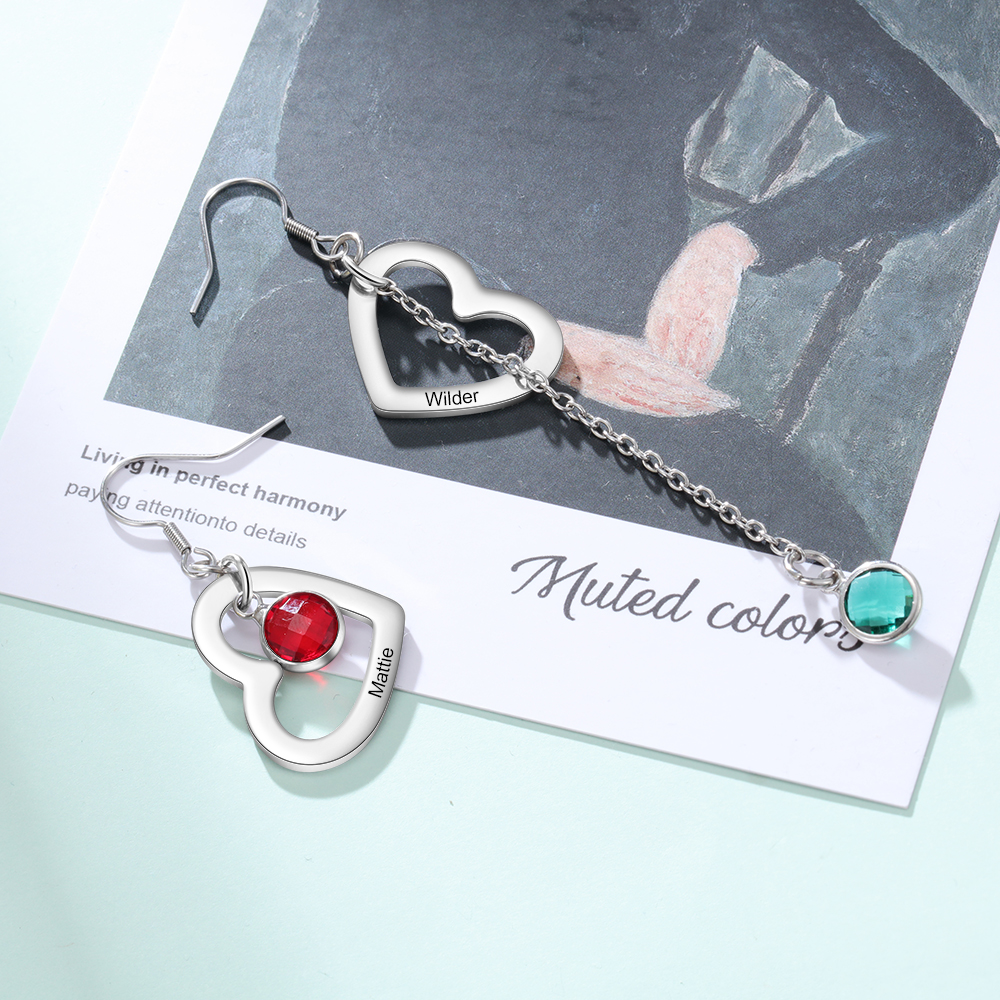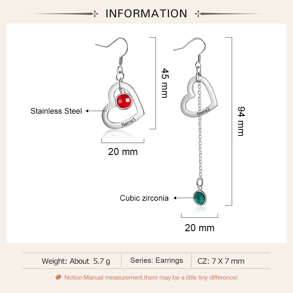 2 Names-Personalized Heart Earrings Custom Names with 2 Birthstones for Women