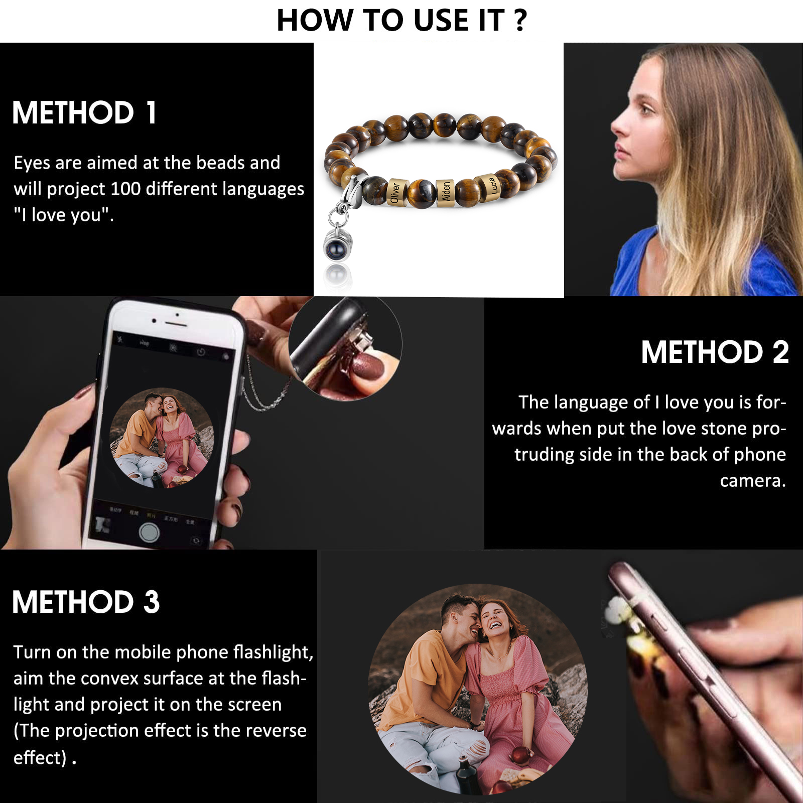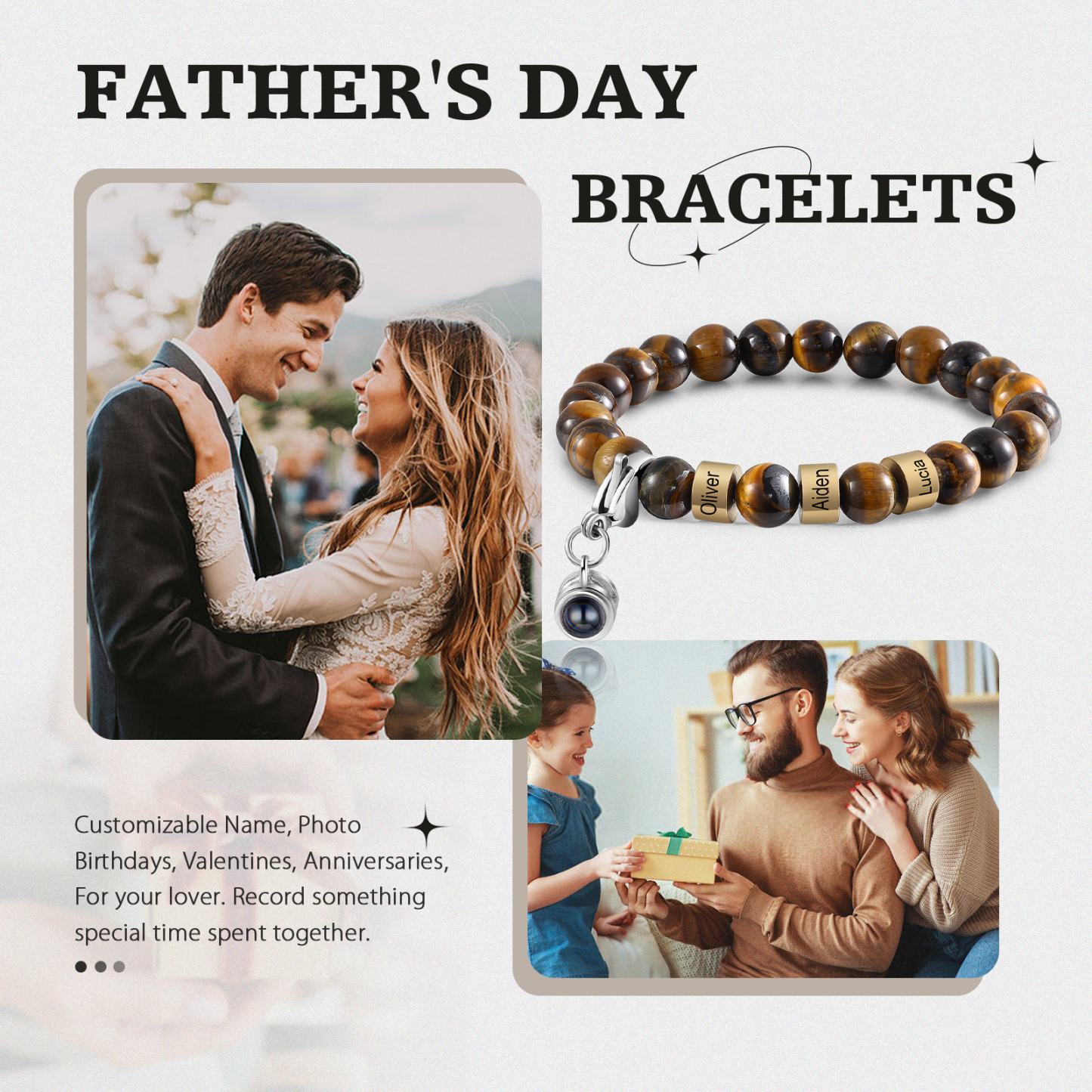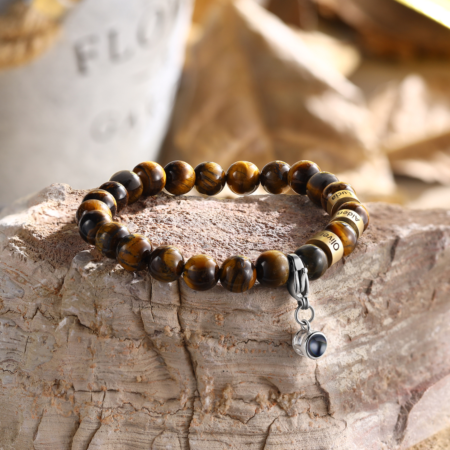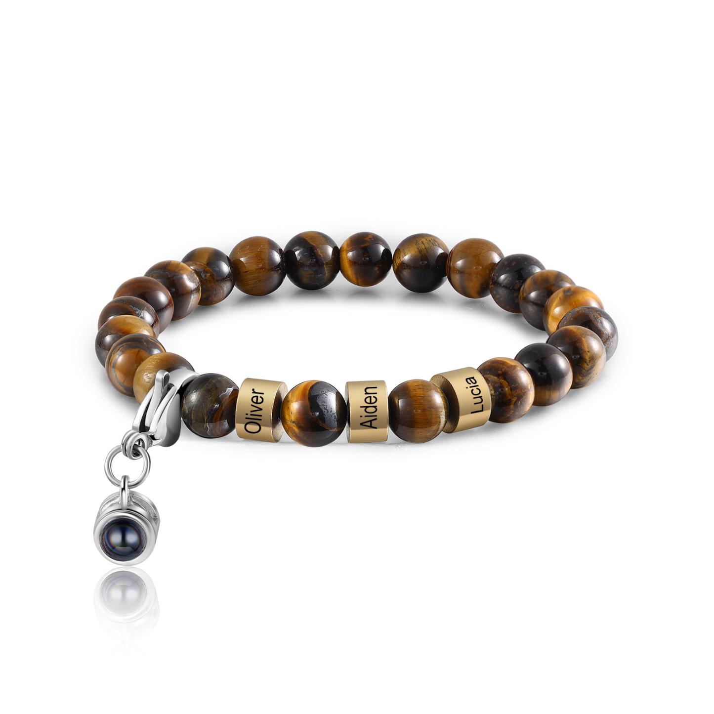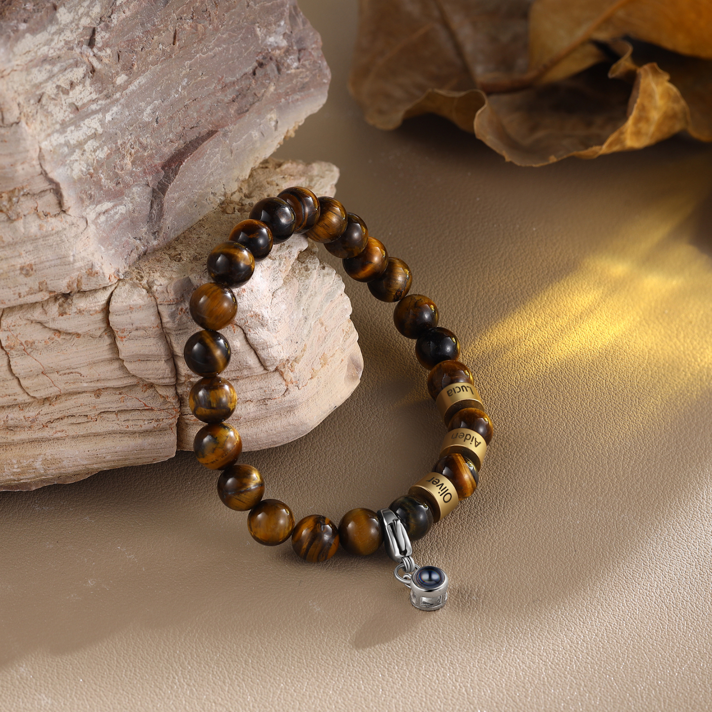 3 Names-Personalized Stone Projection Bracelet Custom Names and 1 Photo Men's Bracelet
