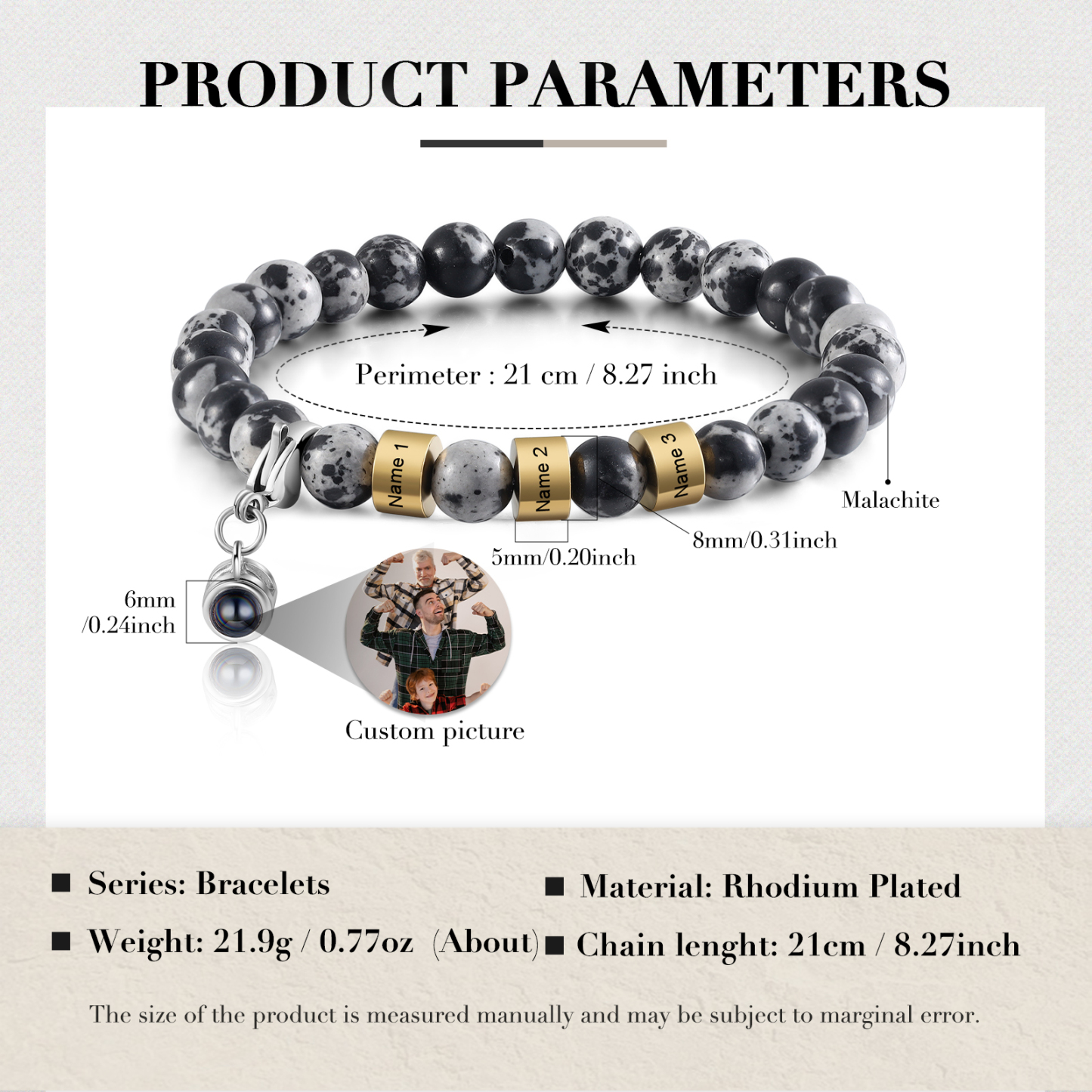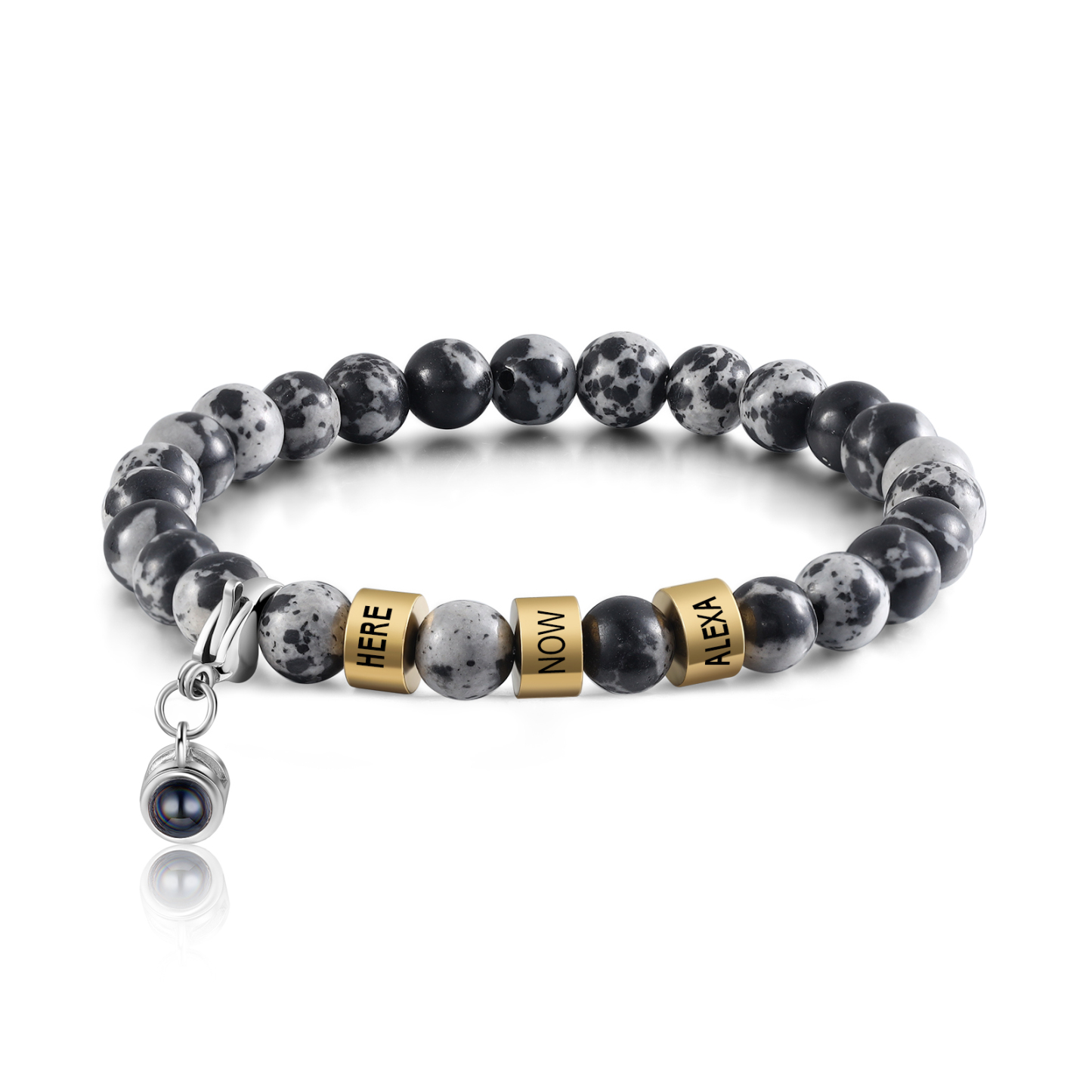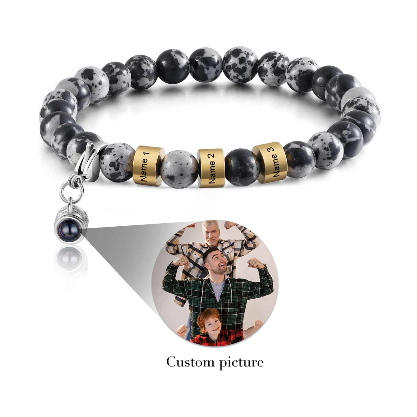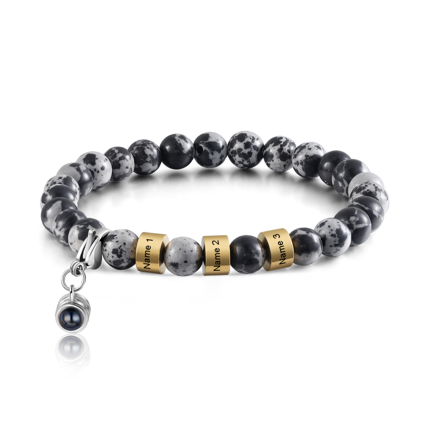 3 Names-Personalized Stone Projection Bracelet Custom Names and Photo Men's Bracelet