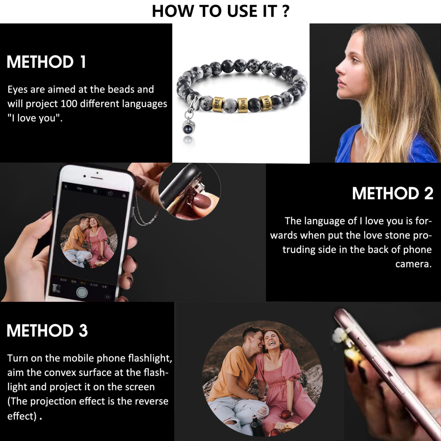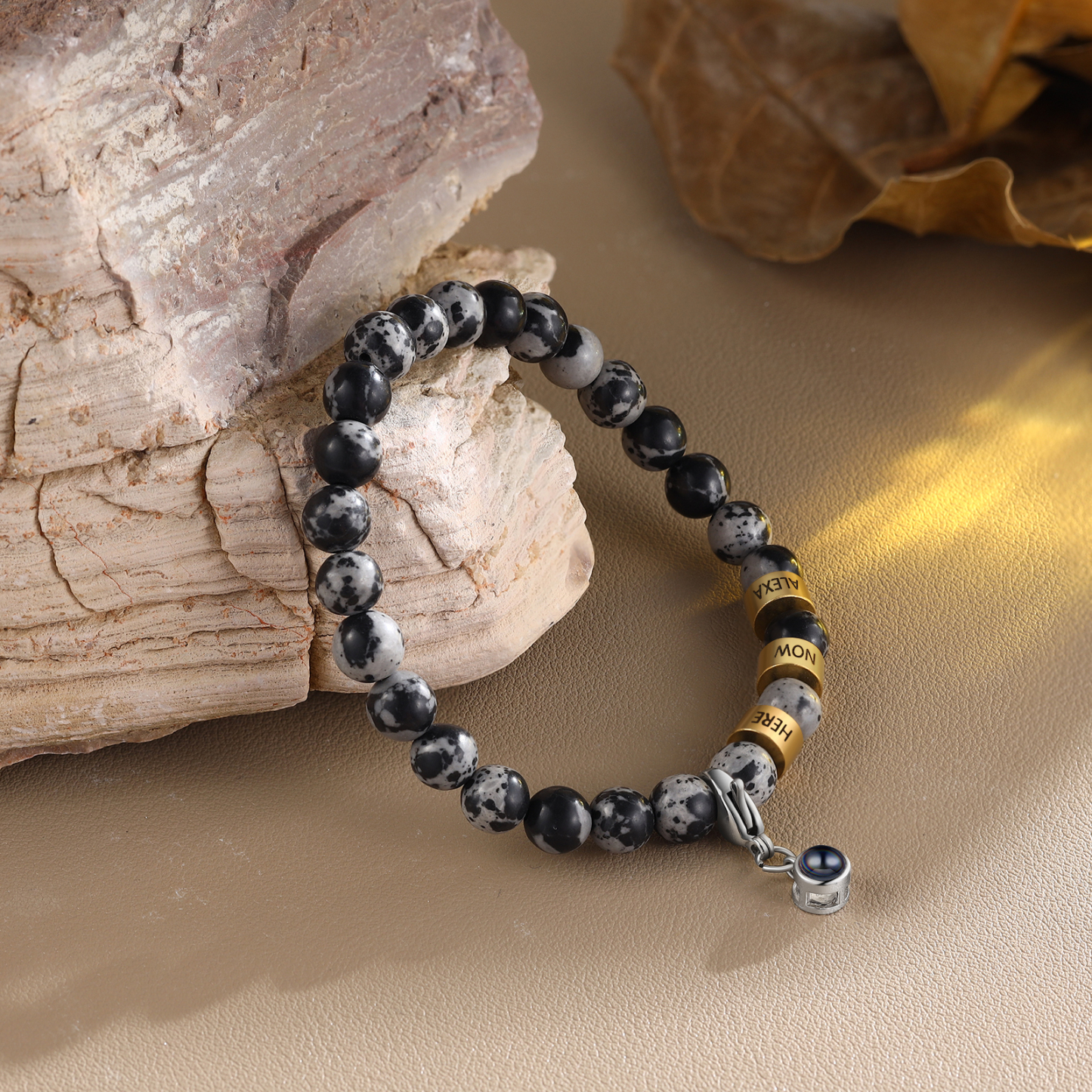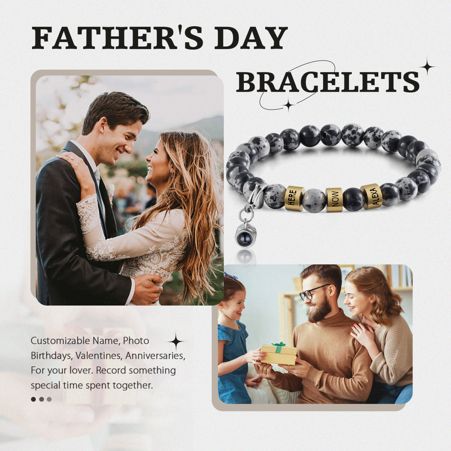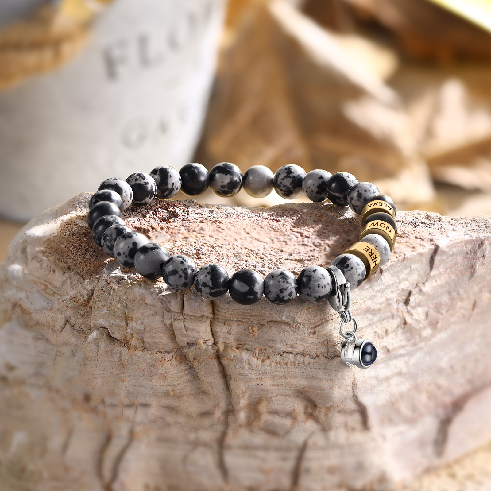 3 Names-Personalized Stone Projection Bracelet Custom Names and Photo Men's Bracelet