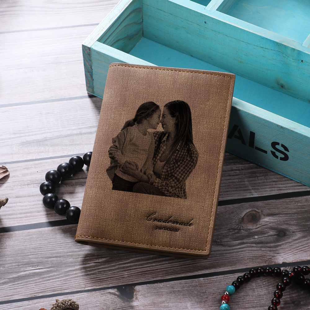 Personalized Leather Wallet Engraved Photo Short Purse Gifts For Men
