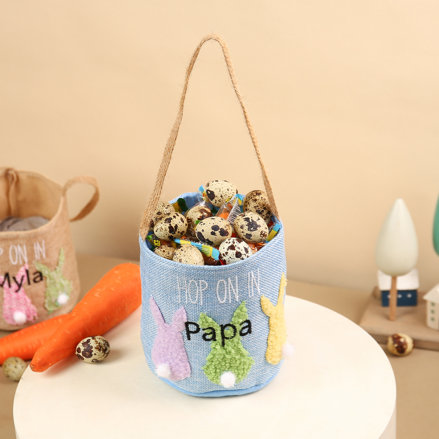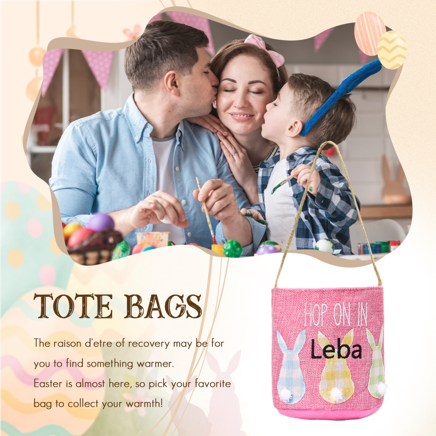 🐰 Welcome spring with our charming Easter Bunny Tote Bag – a personalized bunny bucket that adds a touch of whimsy to your festivities! 🐣🎉