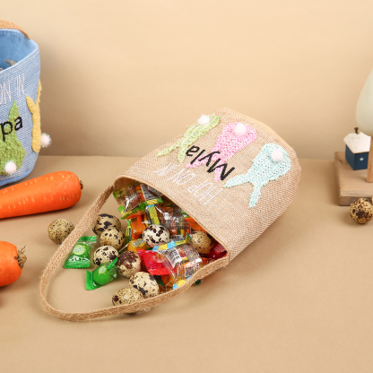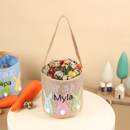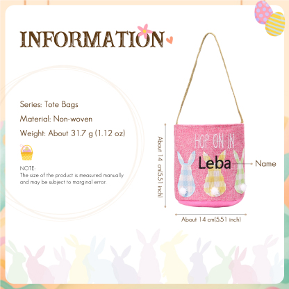 Bunny Tote Bag Personalized Name Bucket Bag White Basket Easter Gifts For Kids