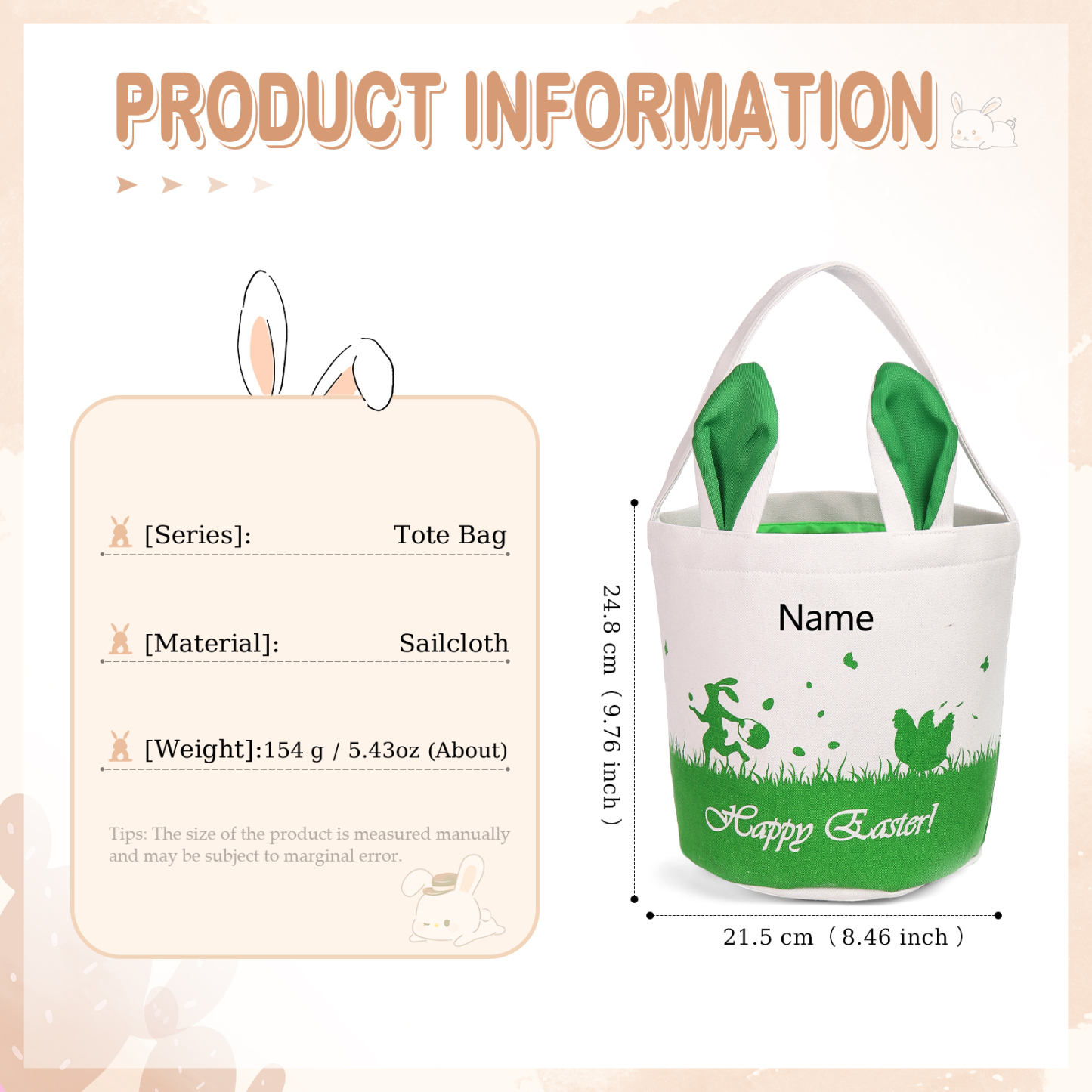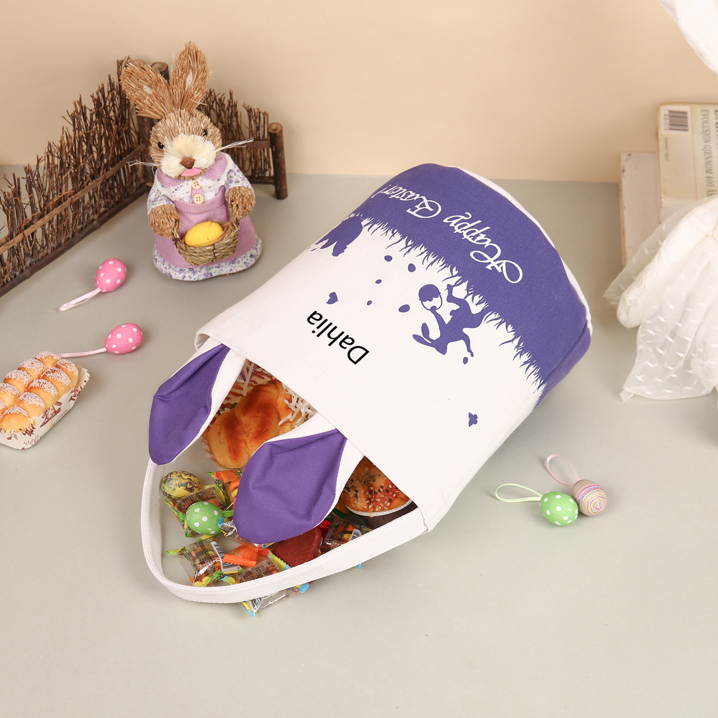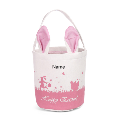 Bunny Tote Bag Personalized Name Bucket Bag White Basket Easter Gifts For Kids