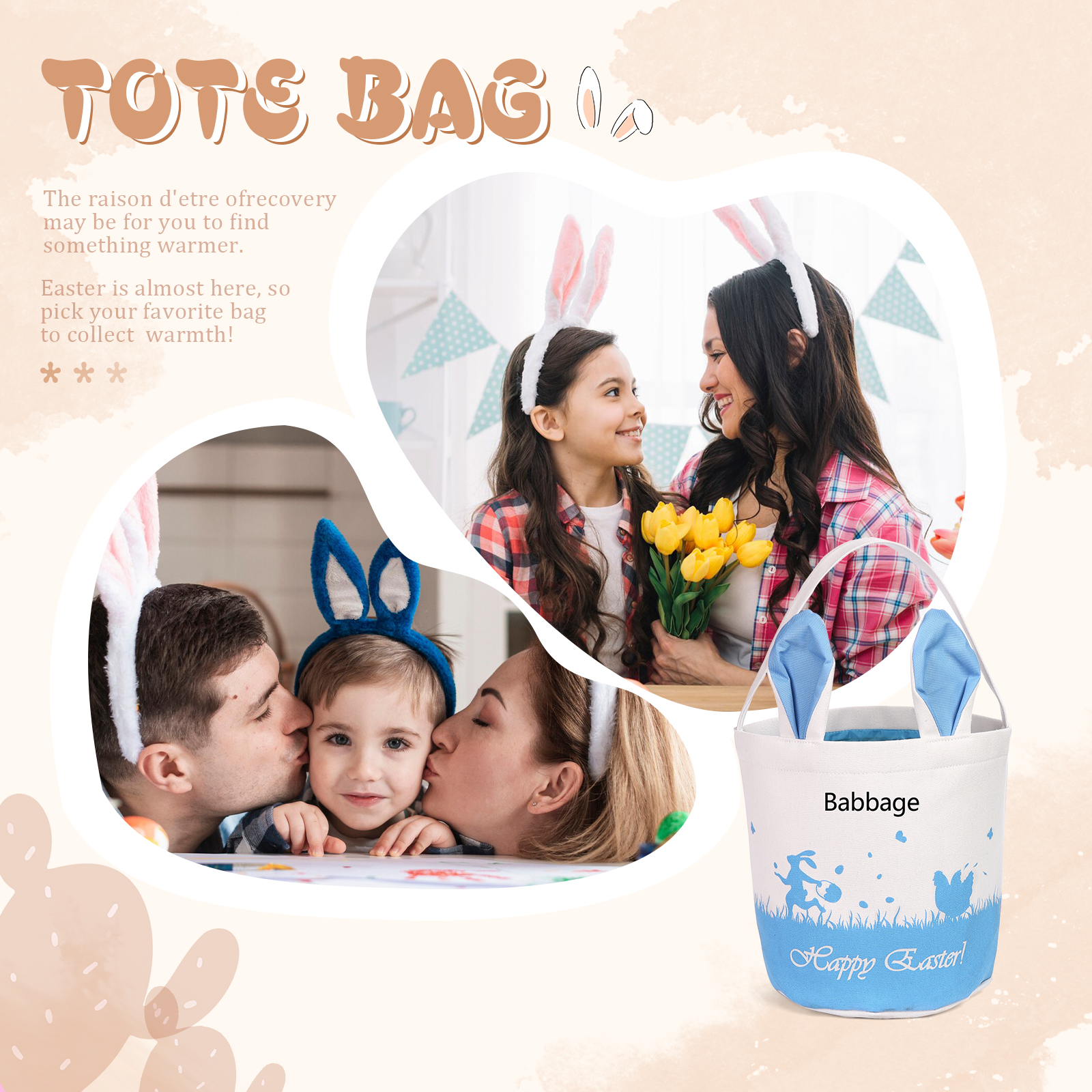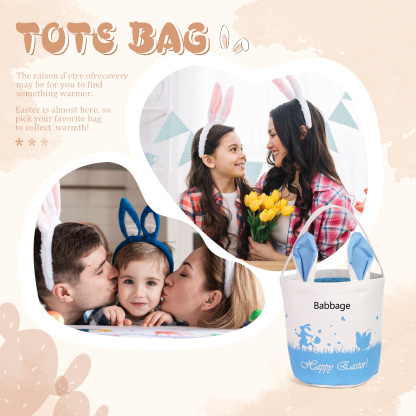 🐰 Welcome spring with our charming Easter Bunny Tote Bag – a personalized bunny bucket that adds a touch of whimsy to your festivities! 🐣🎉