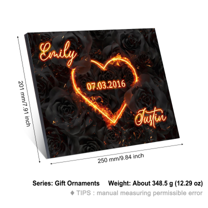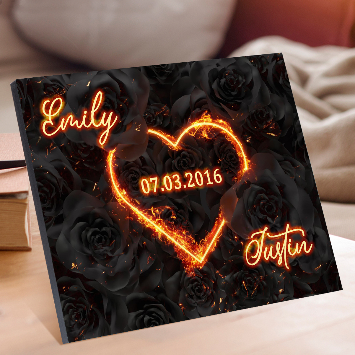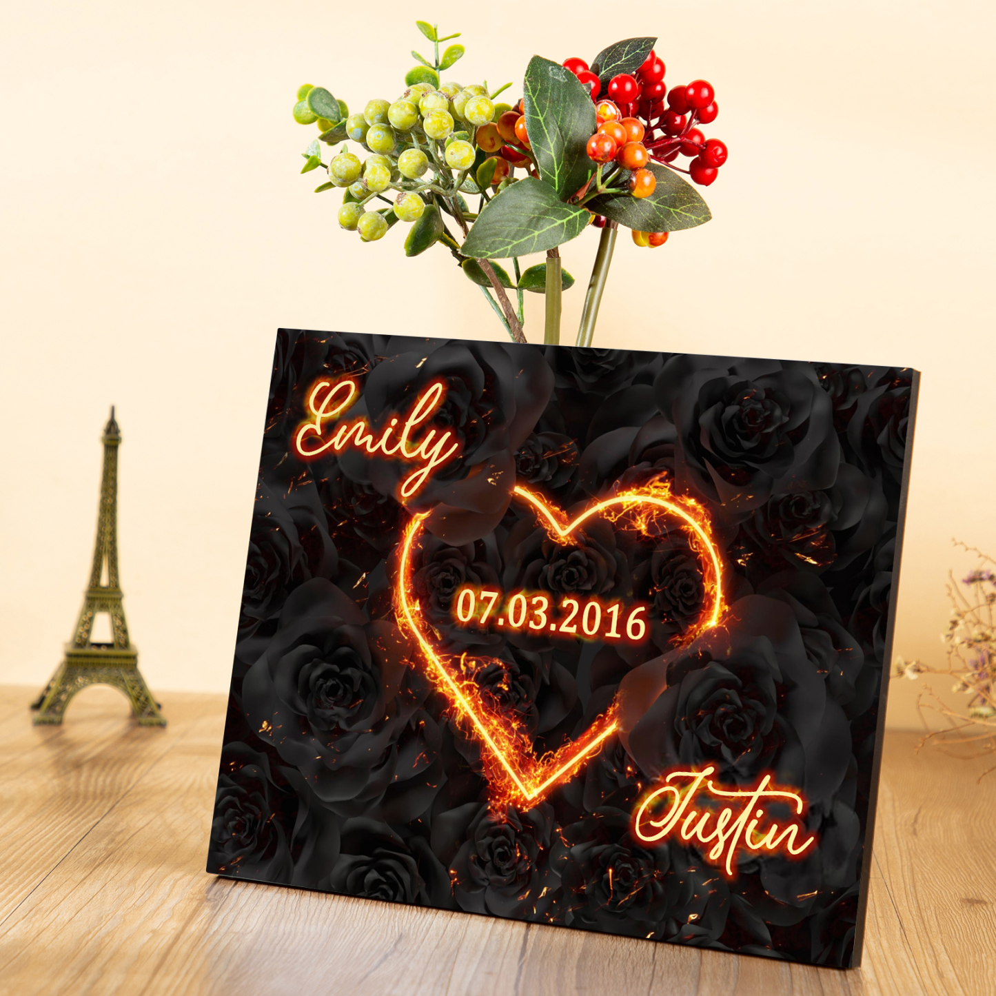 2 Names-Personalized Wooden Frame Custom Names and 1 Date Heart for Couple