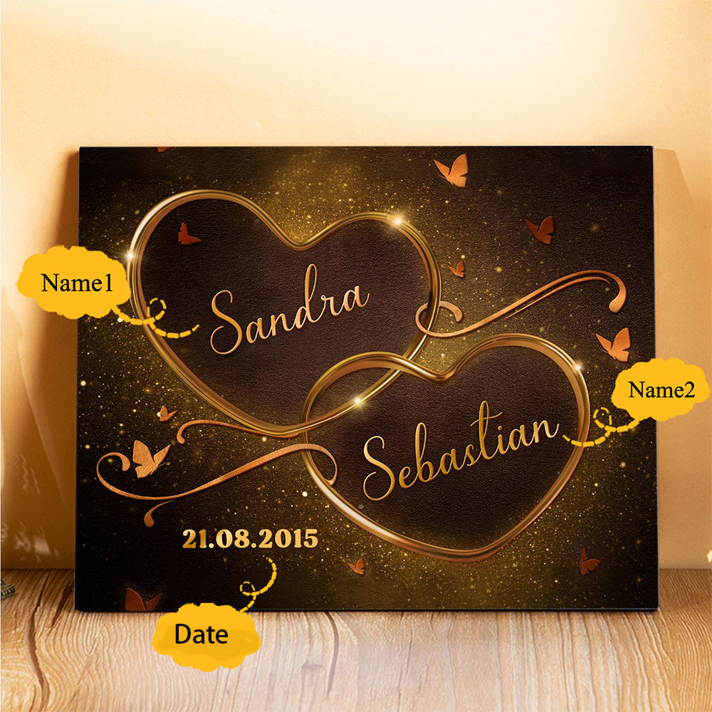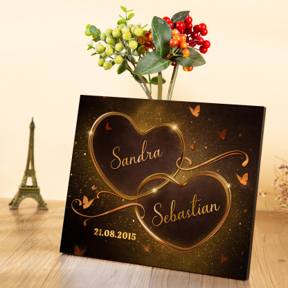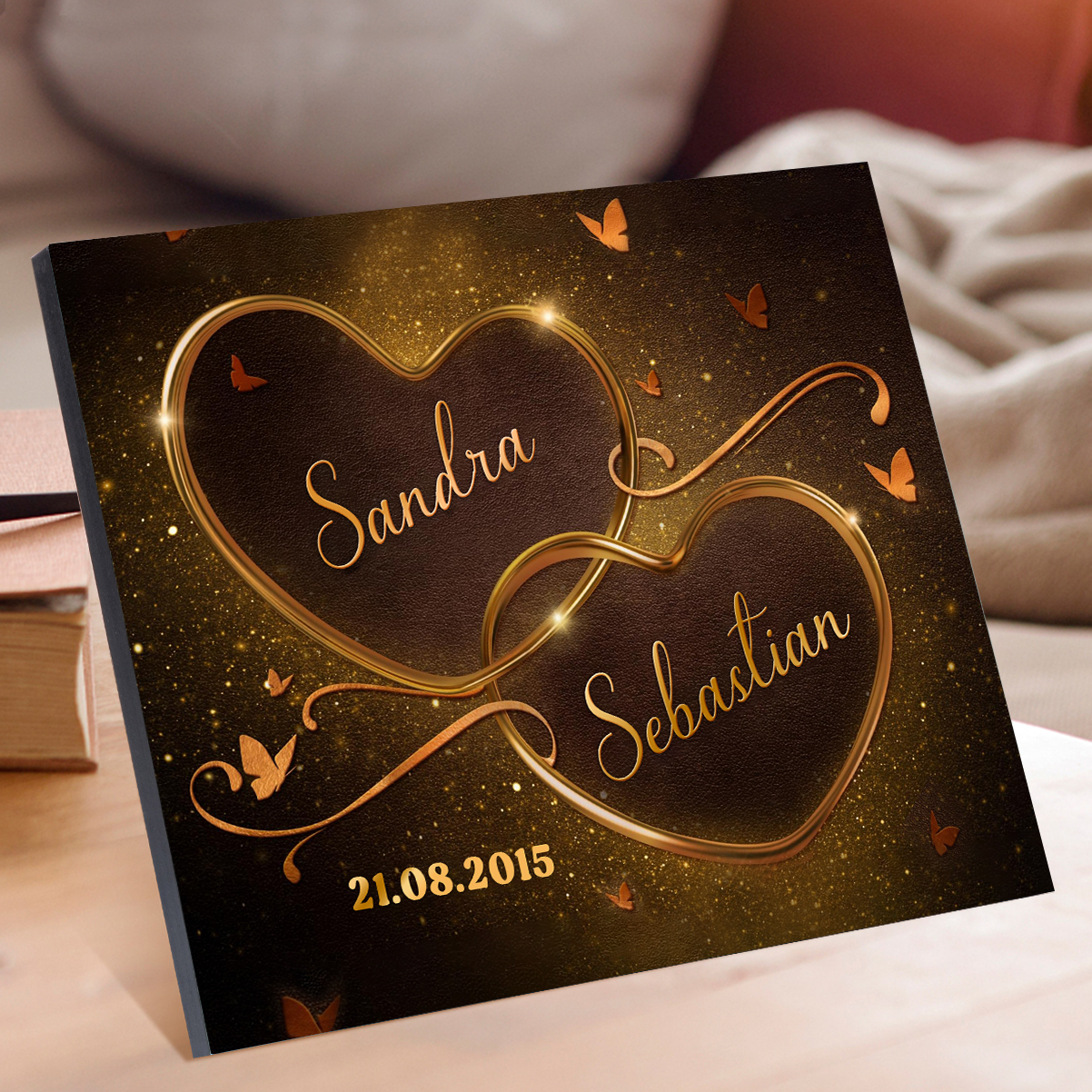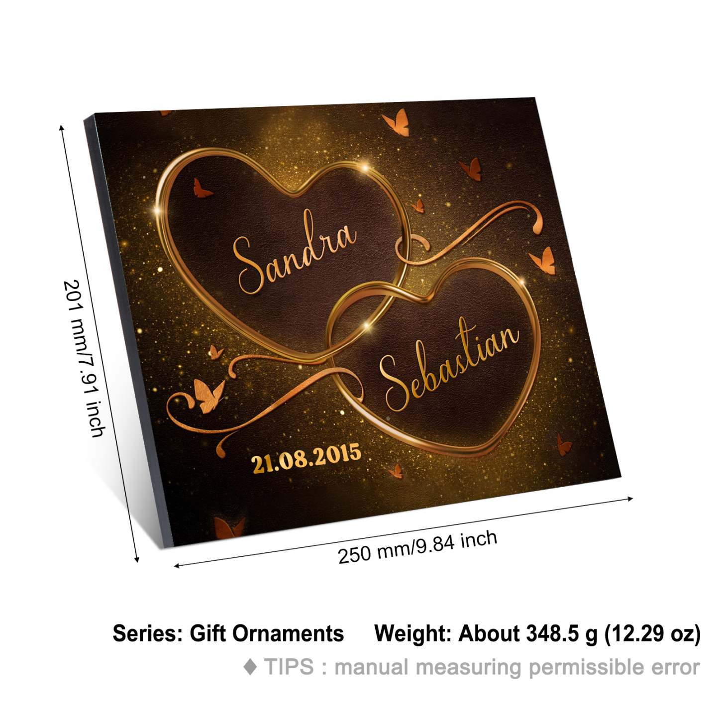 2 Names-Personalized Wooden Frame Custom Names and 1 Date Heart for Couple