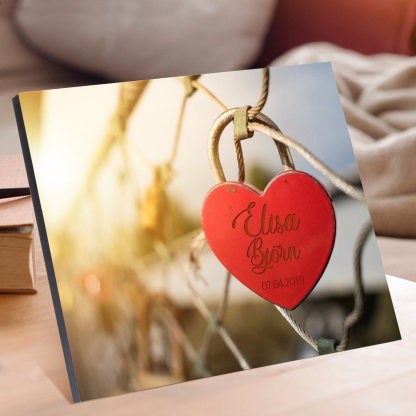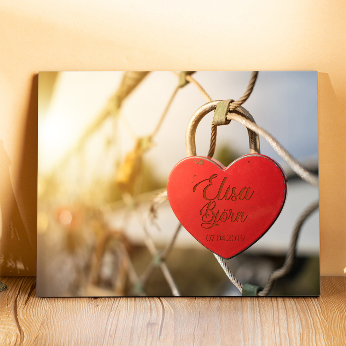 2 Names-Personalized Wooden Frame Custom Names and 1 Date Heart for Couple