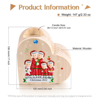 Christmas Family Candle Holder Wooden Custom 5 Names Heart Candlesticks Gifts For Family