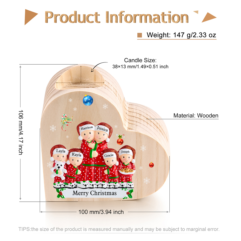 Christmas Family Candle Holder Wooden Custom 6 Names Heart Candlesticks Gifts For Family