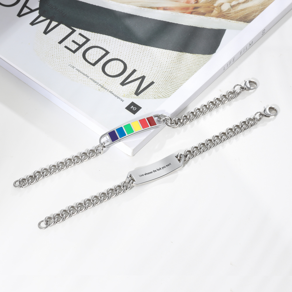 Personalized Rainbow Bar Bracelet Engraved 1 Text LGBT Pride Gifts