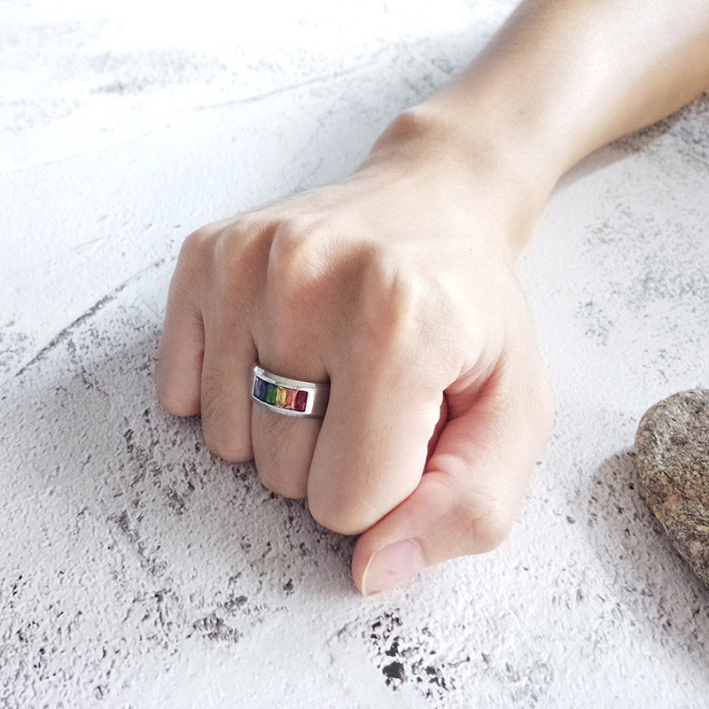 Looking for a symbol as vibrant as your love? Our customizable rainbow pride rings let you add text to celebrate your unique bond. 🌈💍 Perfect for expressing your love in every hue. Surprise your partner with a token as colorful and special as your relationship!