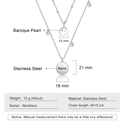 Baroque Pearl Pendant Necklace 1 Personalized Name for Women