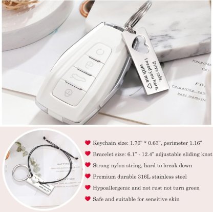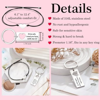 Couple Drive Safe Keychain Bracelet Set With Gift Card-Couple Gift Adjustable Bracelet-Always With You Keychain For Him