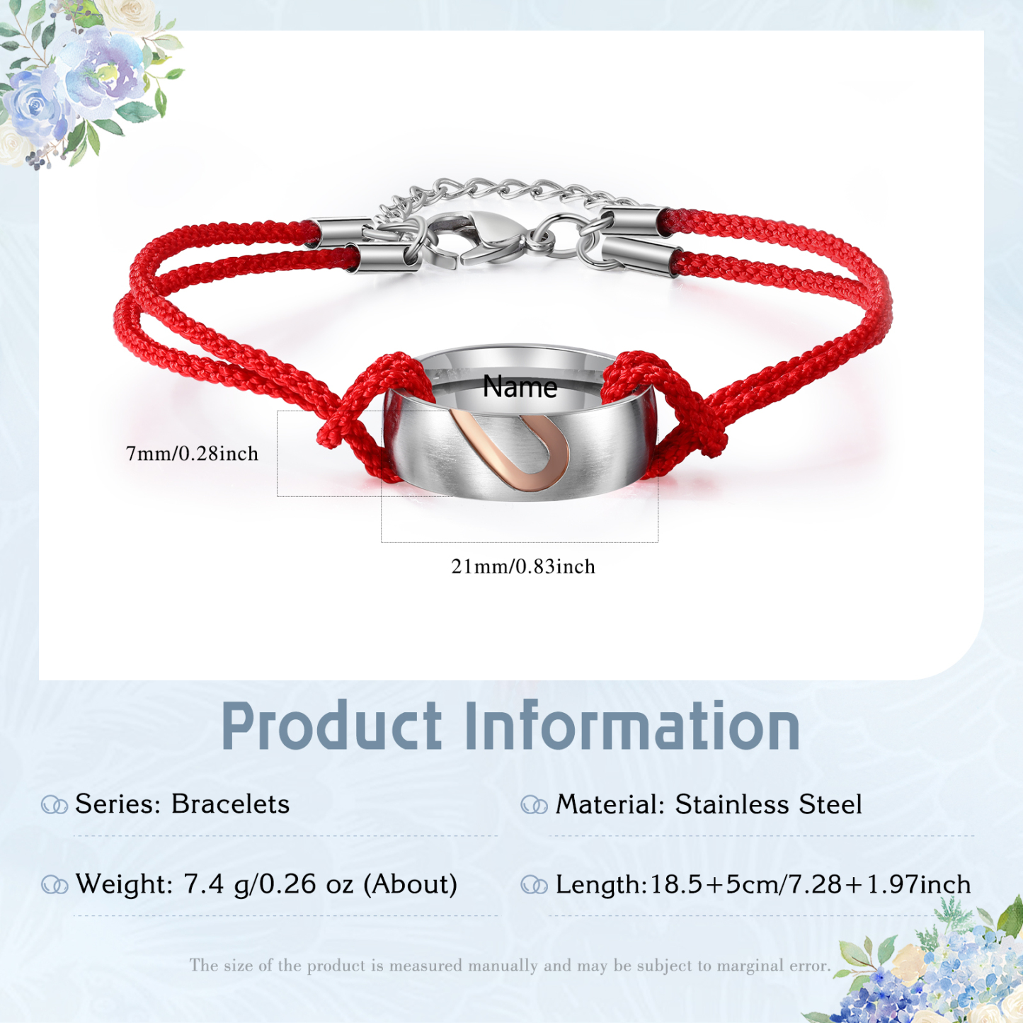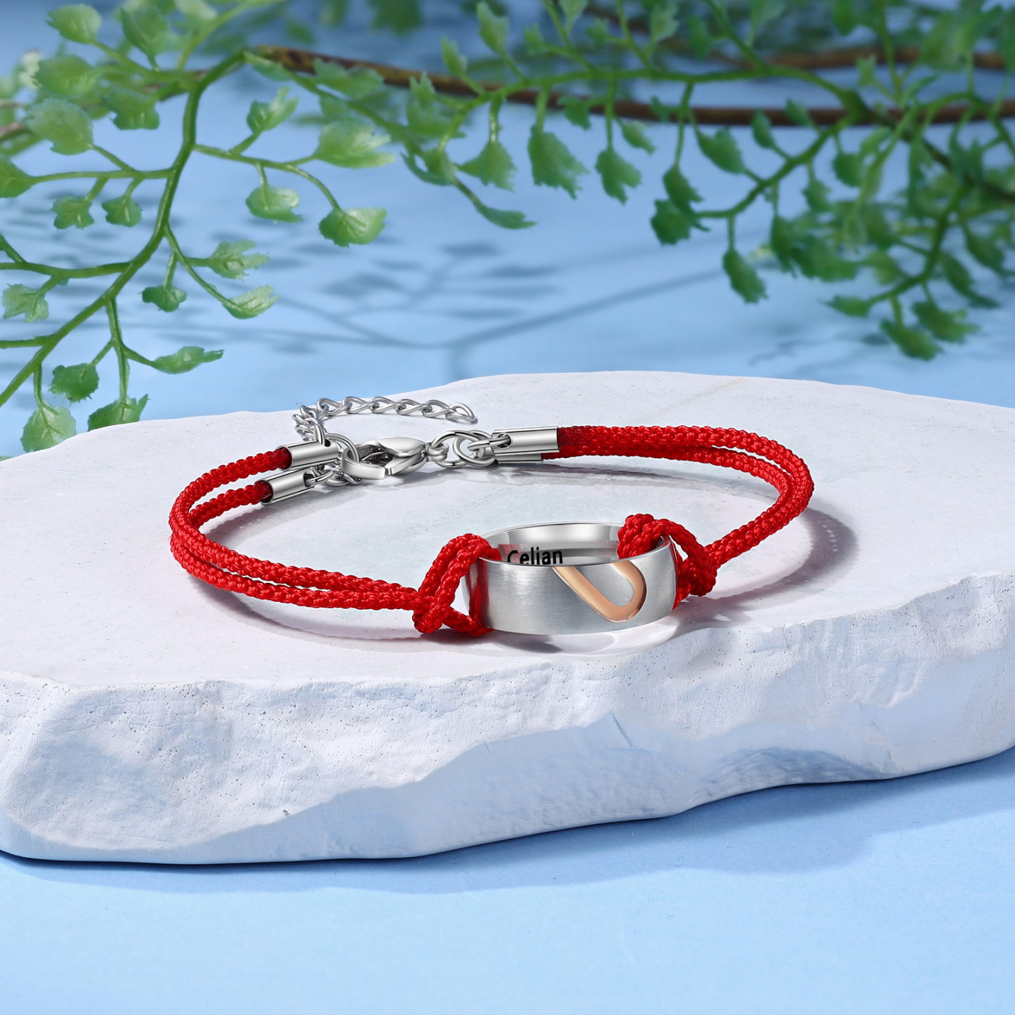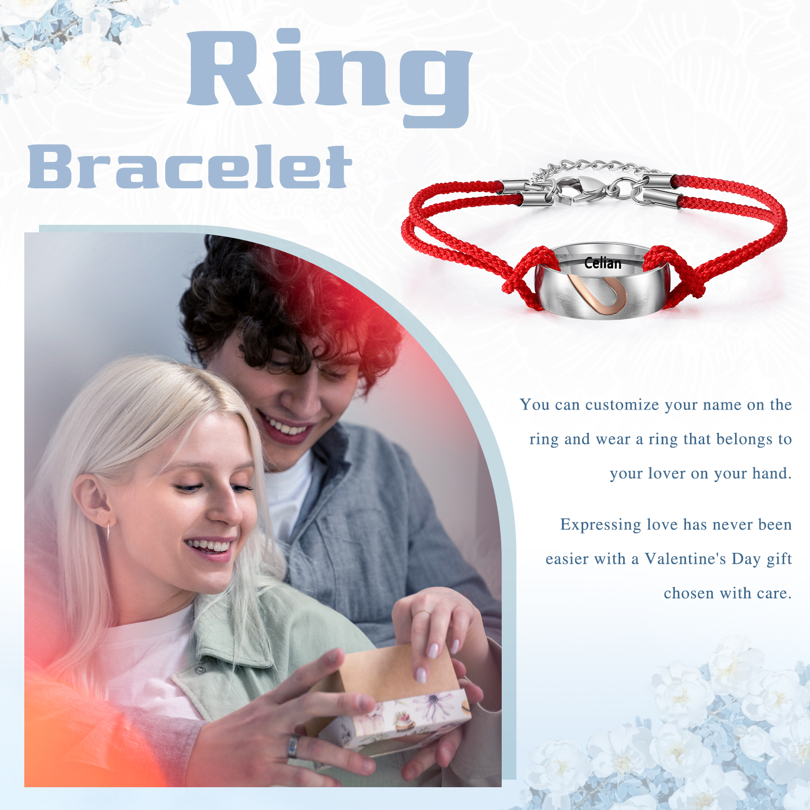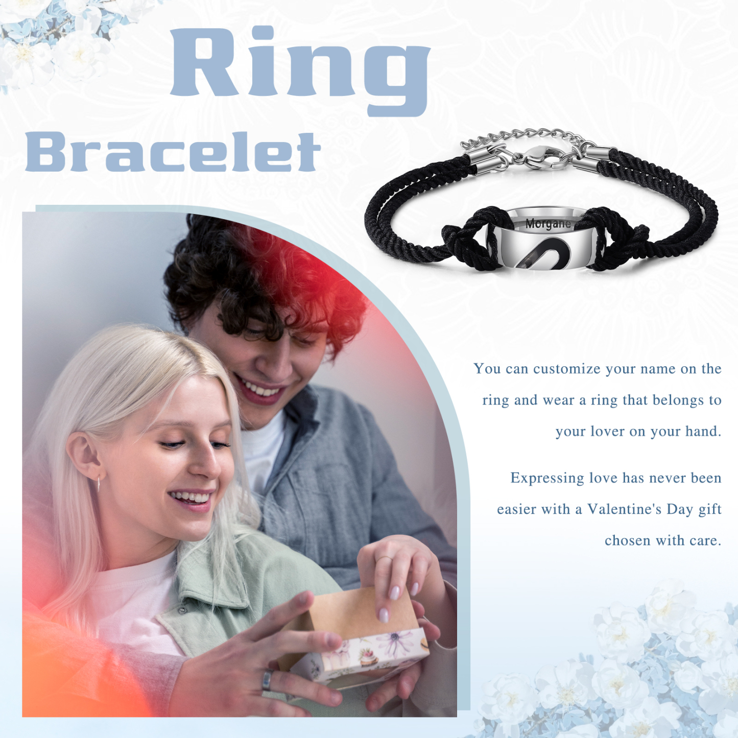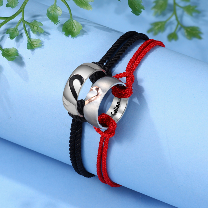 Couple Heart Matching Ring Bracelet Custom Name Engraved Weave Bracelet Gift for Him/Her