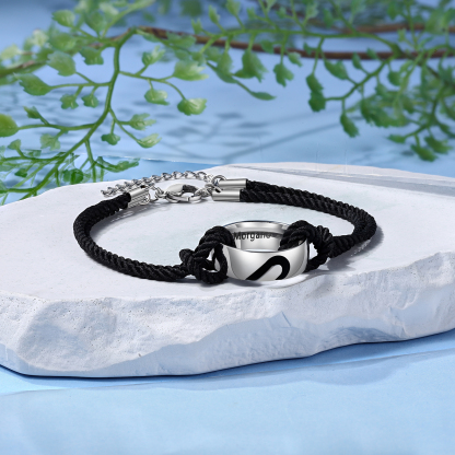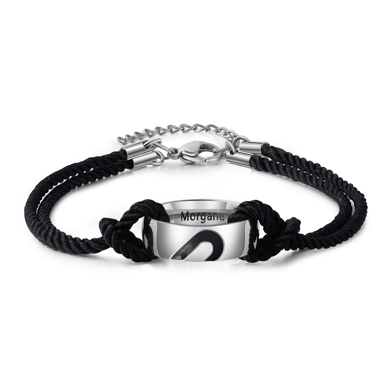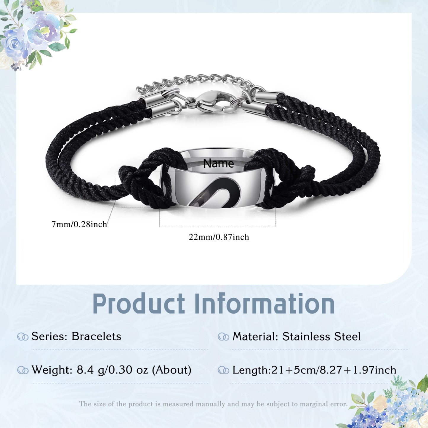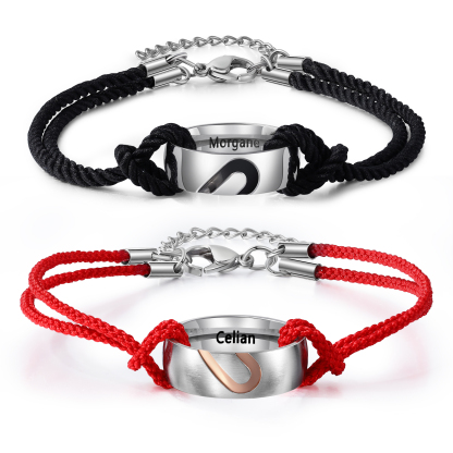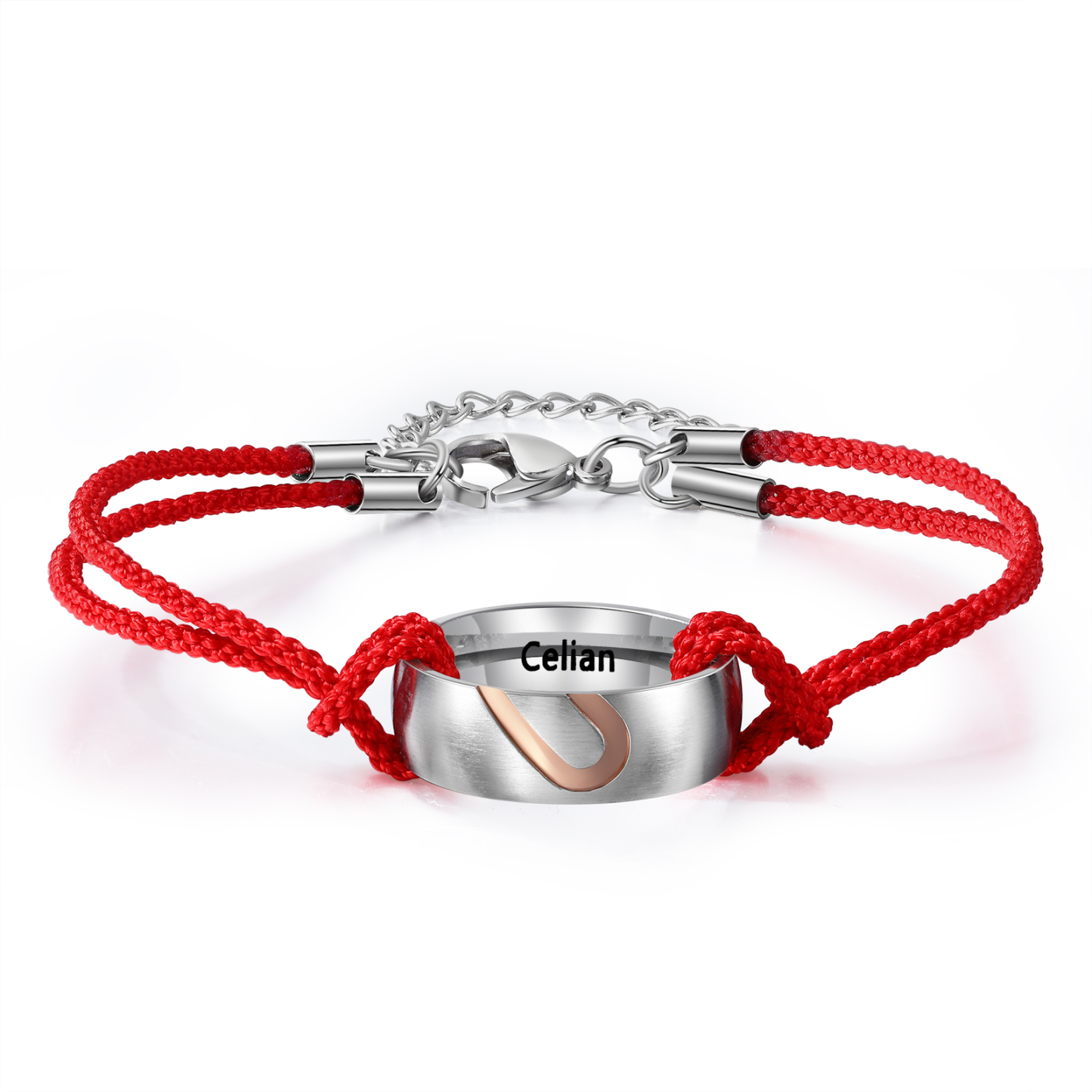 Couple Heart Matching Ring Bracelet Custom Name Engraved Weave Bracelet Gift for Him/Her
