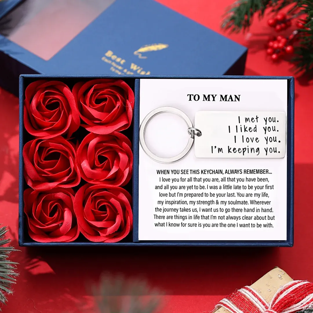 Couple Keychain Valentine's Day Gift "I Met You I Liked you I Love You I'm Keeping You"