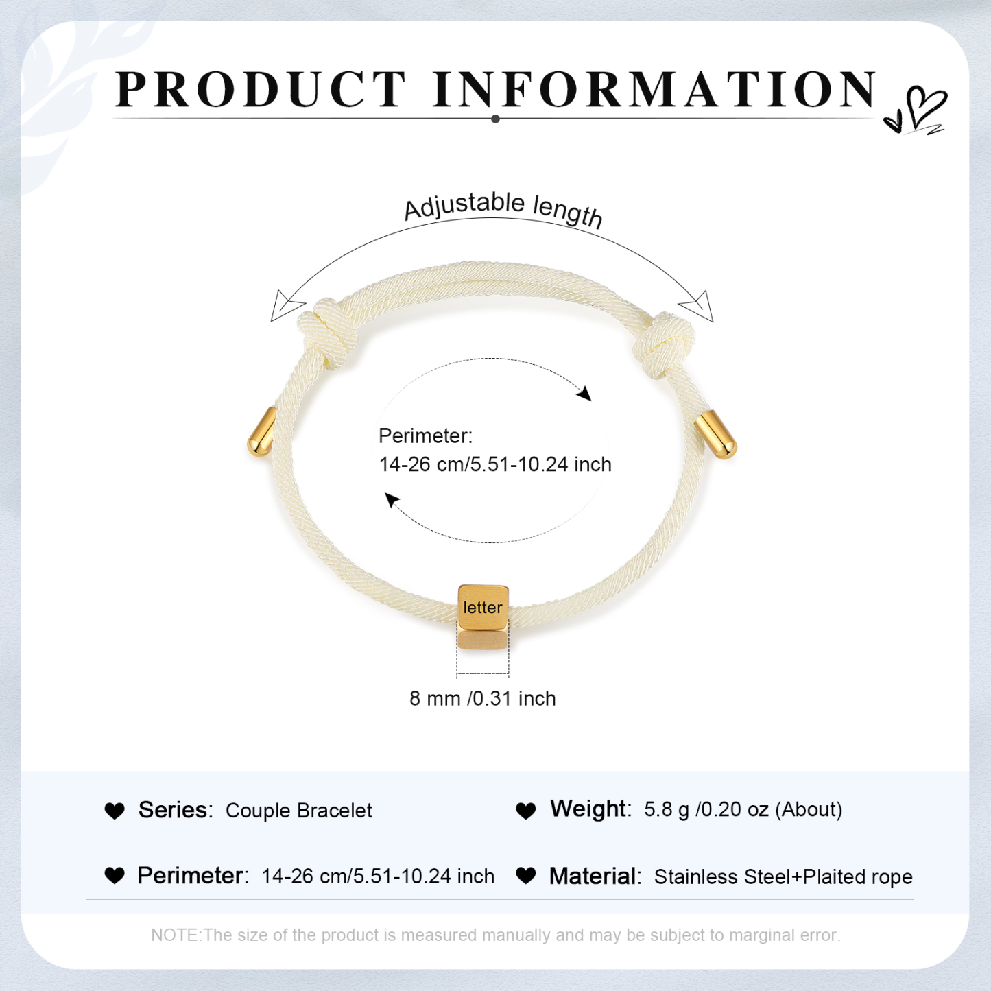 Couple's Bracelet Custom Letter Engraved Beads Stainless Steel Bracelet Personalized Gift for Him/Her