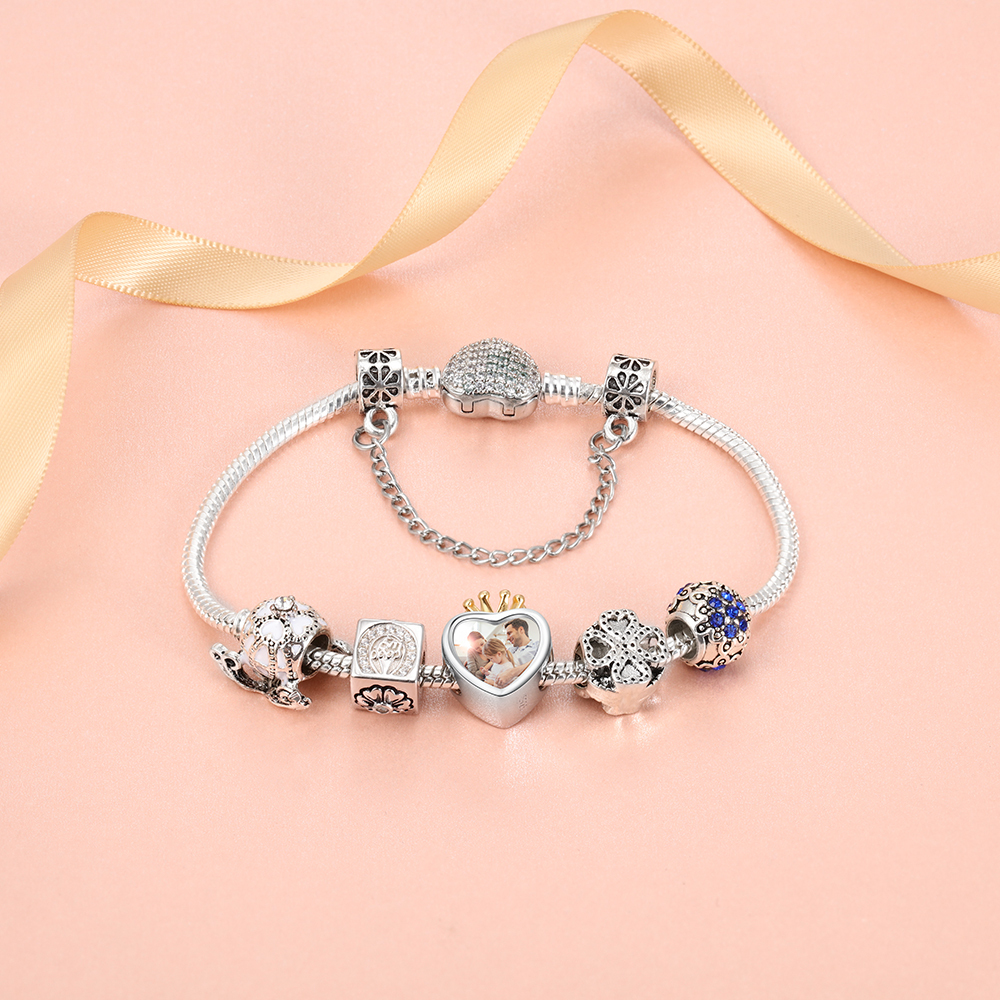 Crown Heart Photo Custom Bracelet with 1 Charm