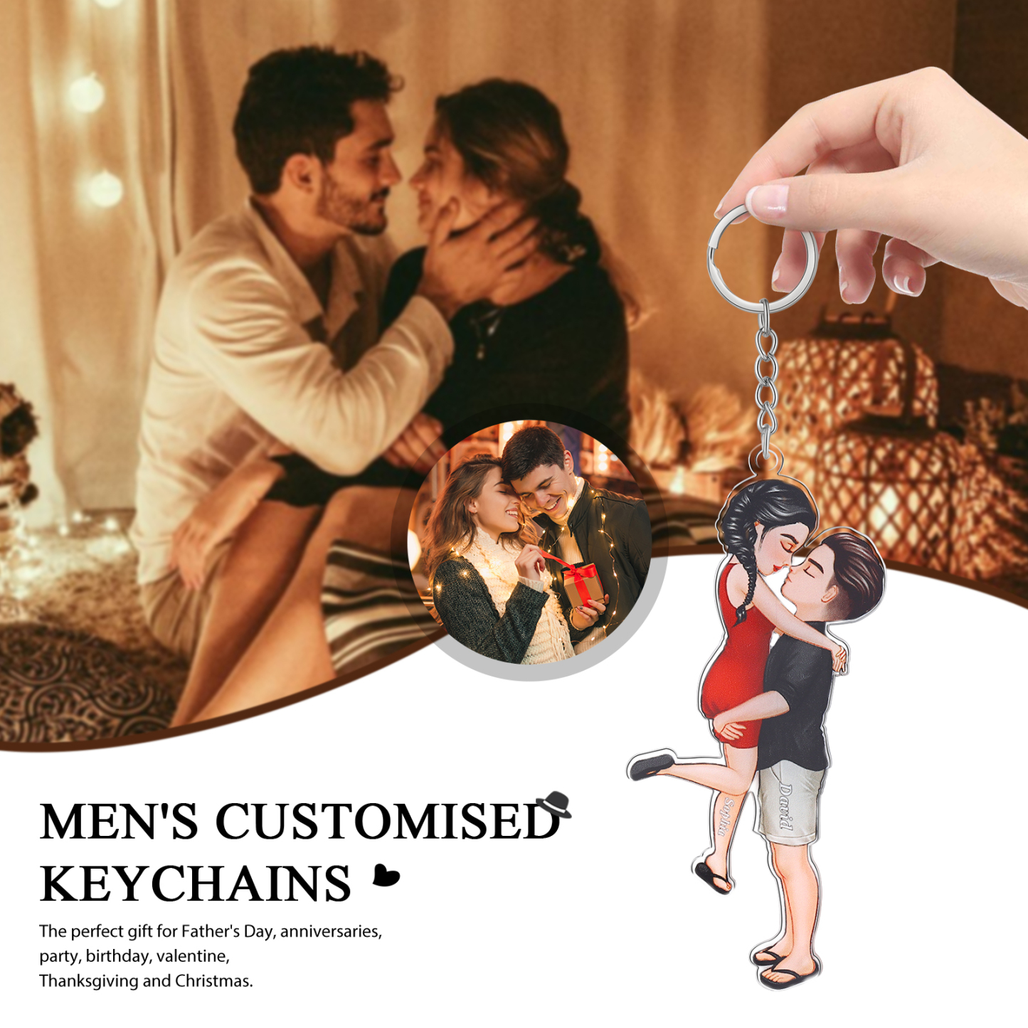 Our keychain is a special gift for you! It can be customized with two names.