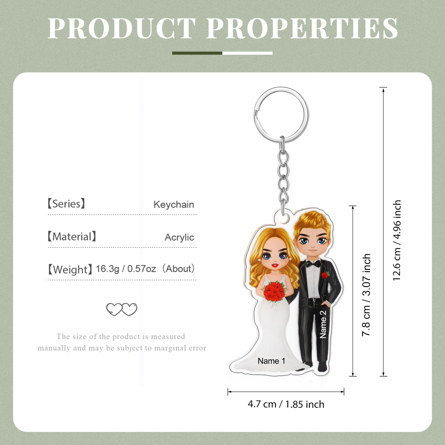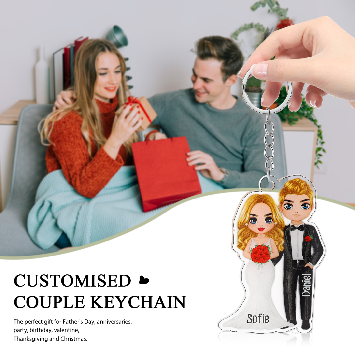 Our keychain is a special gift for you! It can be customized with two names.