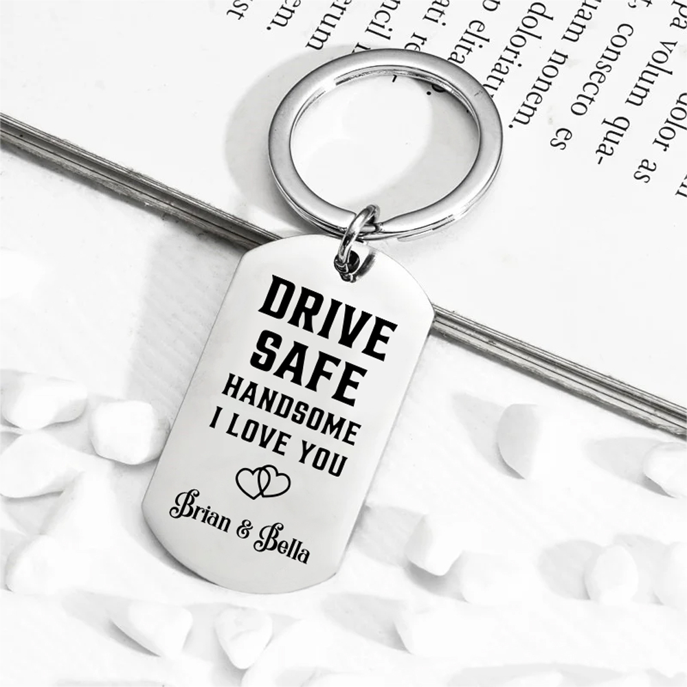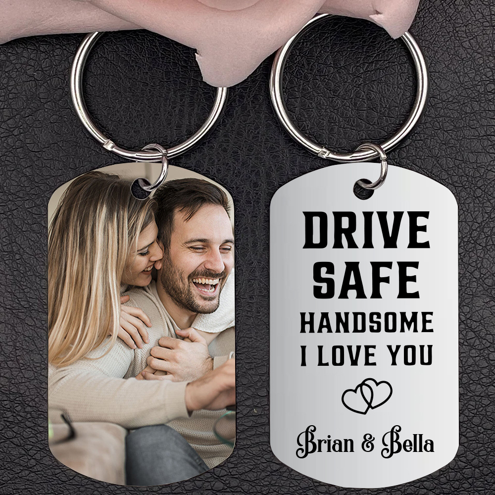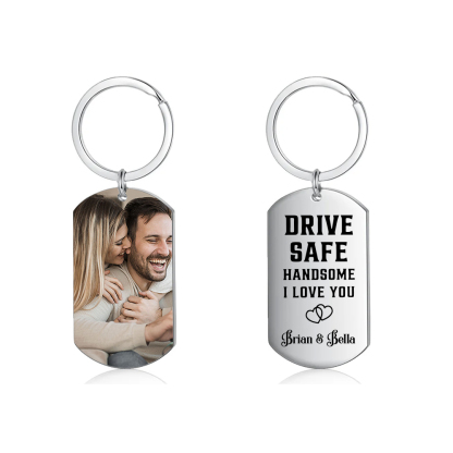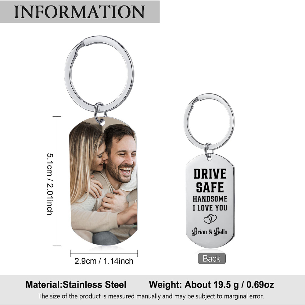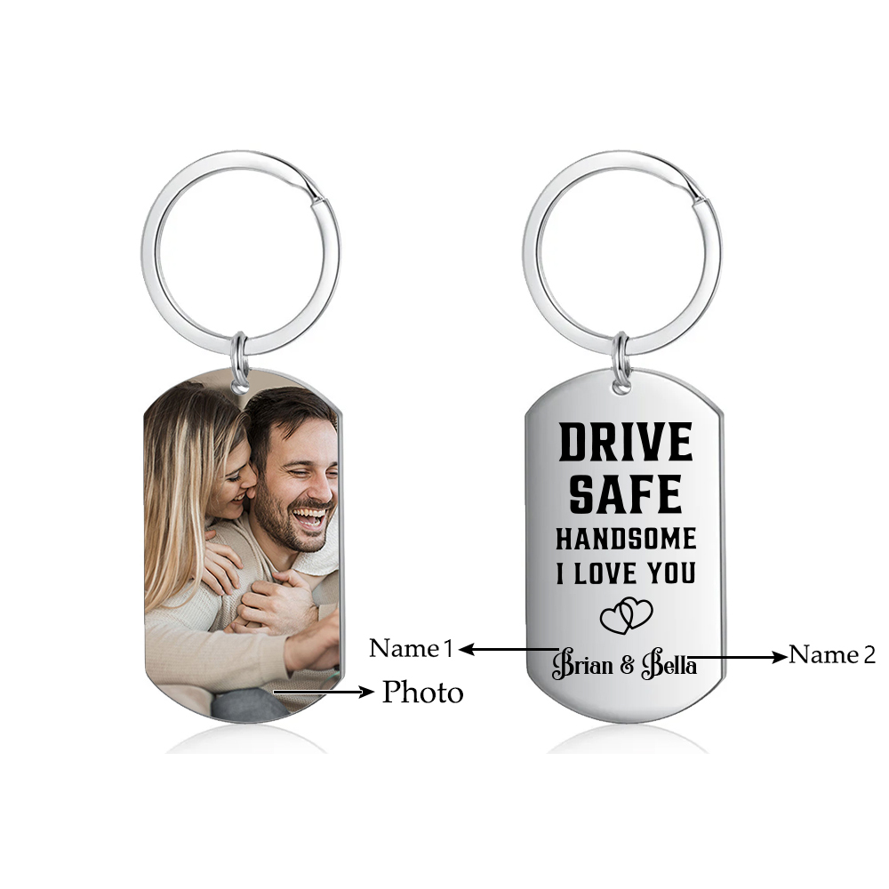 Custom Couple Photo Keychain With Name, Personalized Drive Safe Keychain for Boyfriend/Him