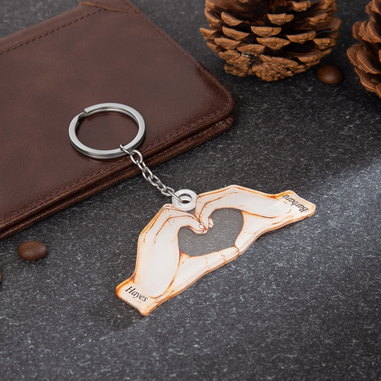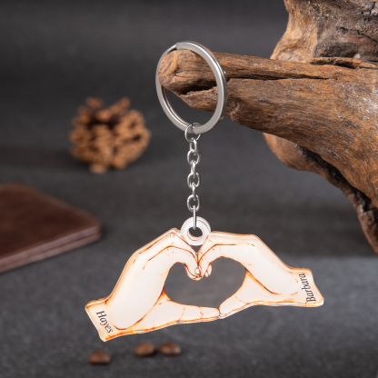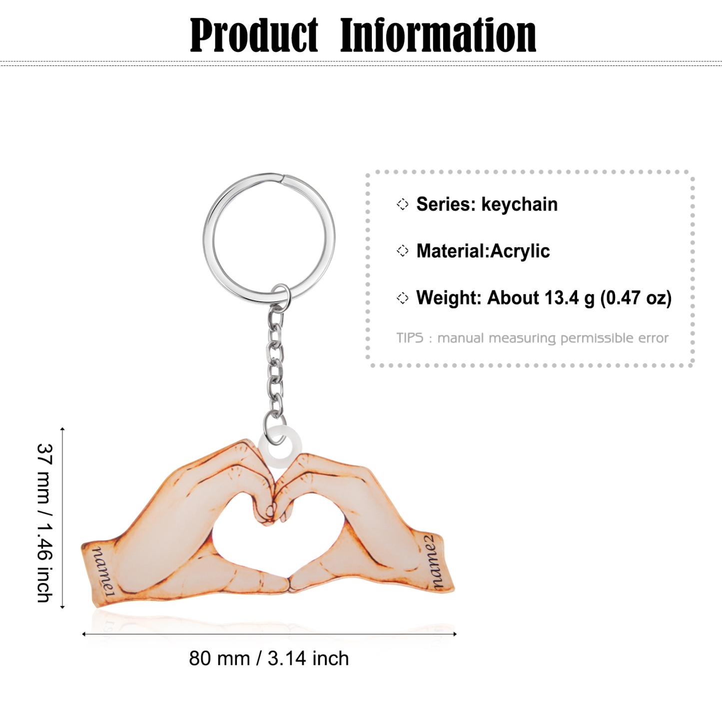 Custom Family Keychain Engrave 2 Names Holding Hands Keychain