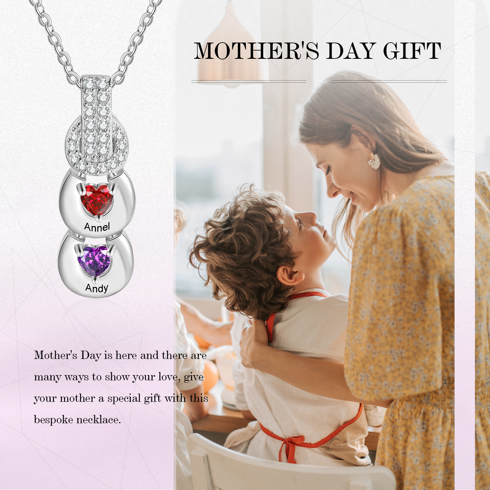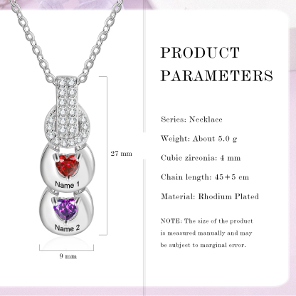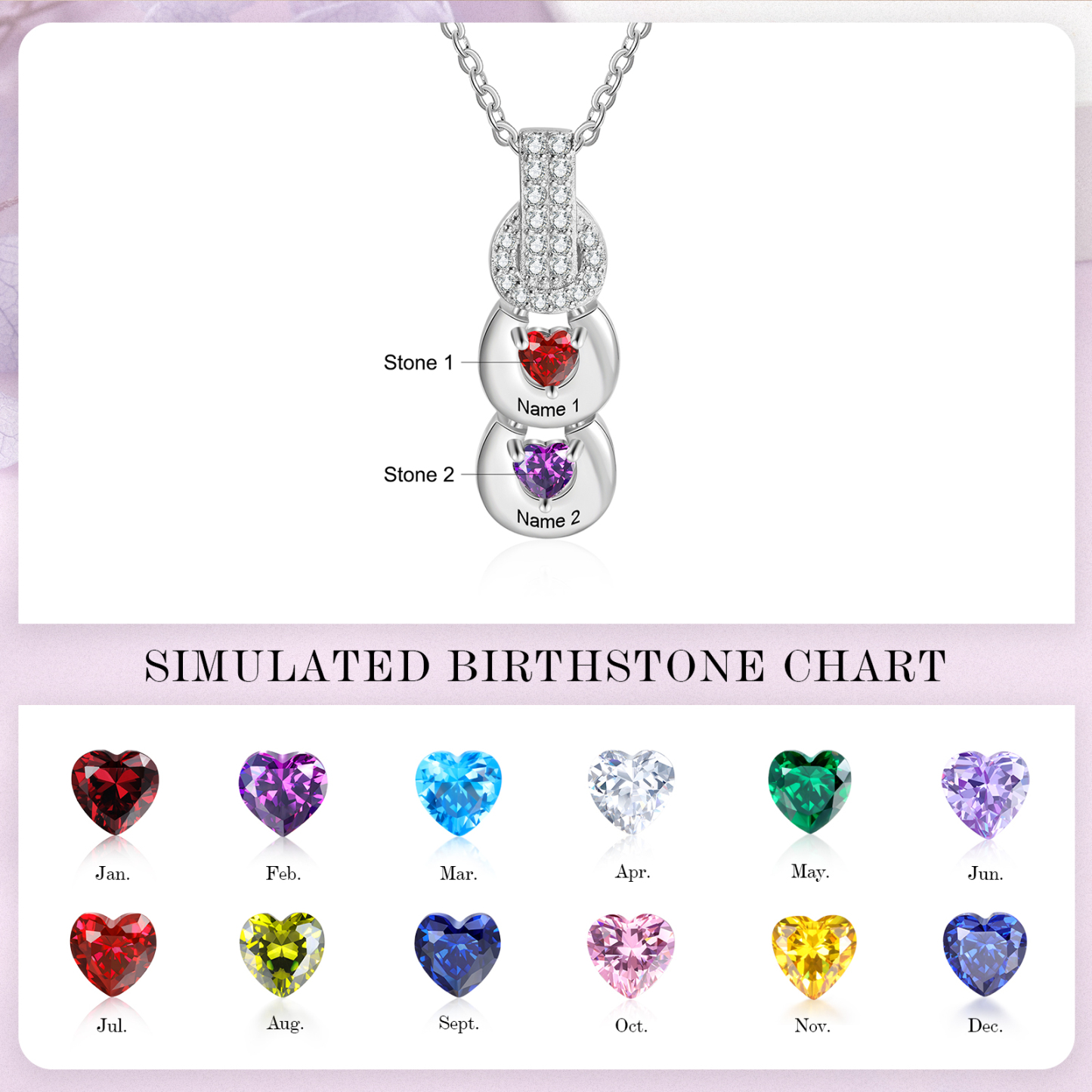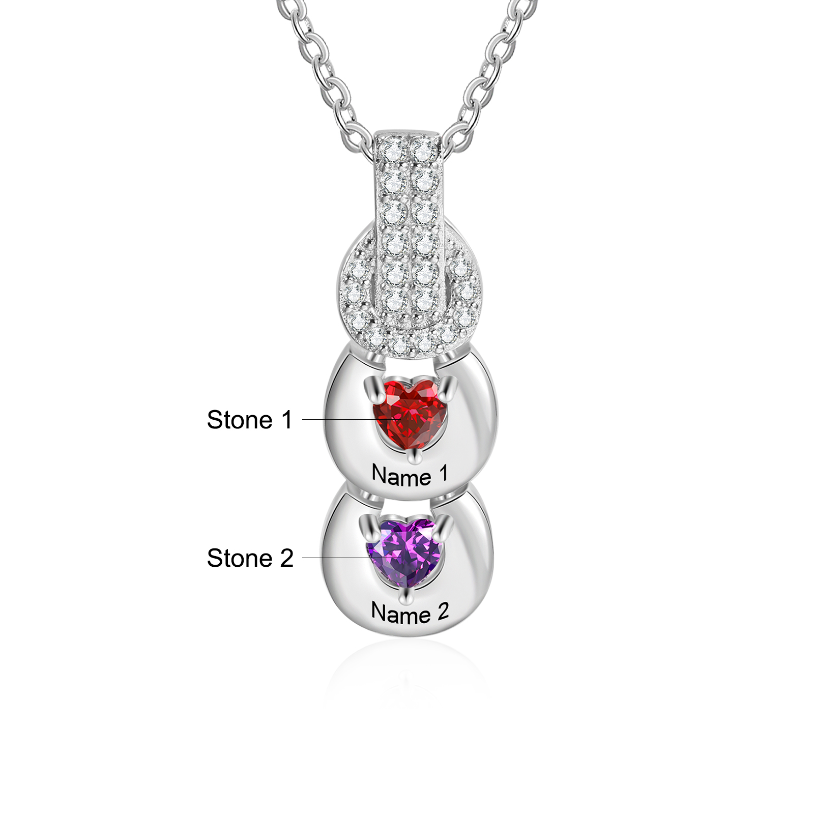 Custom Family Necklace Cascading Pendant with 2 Birthstones Engraving 2 Names Gifts for Her