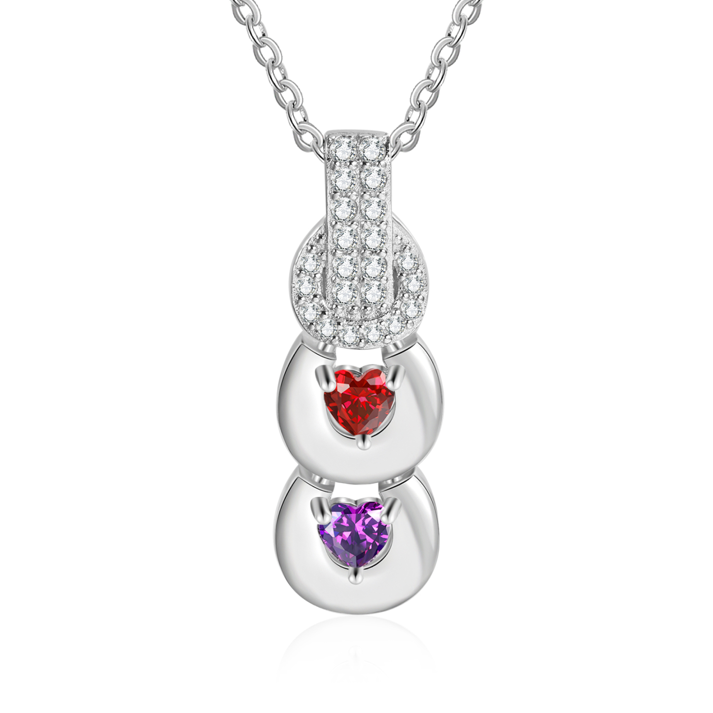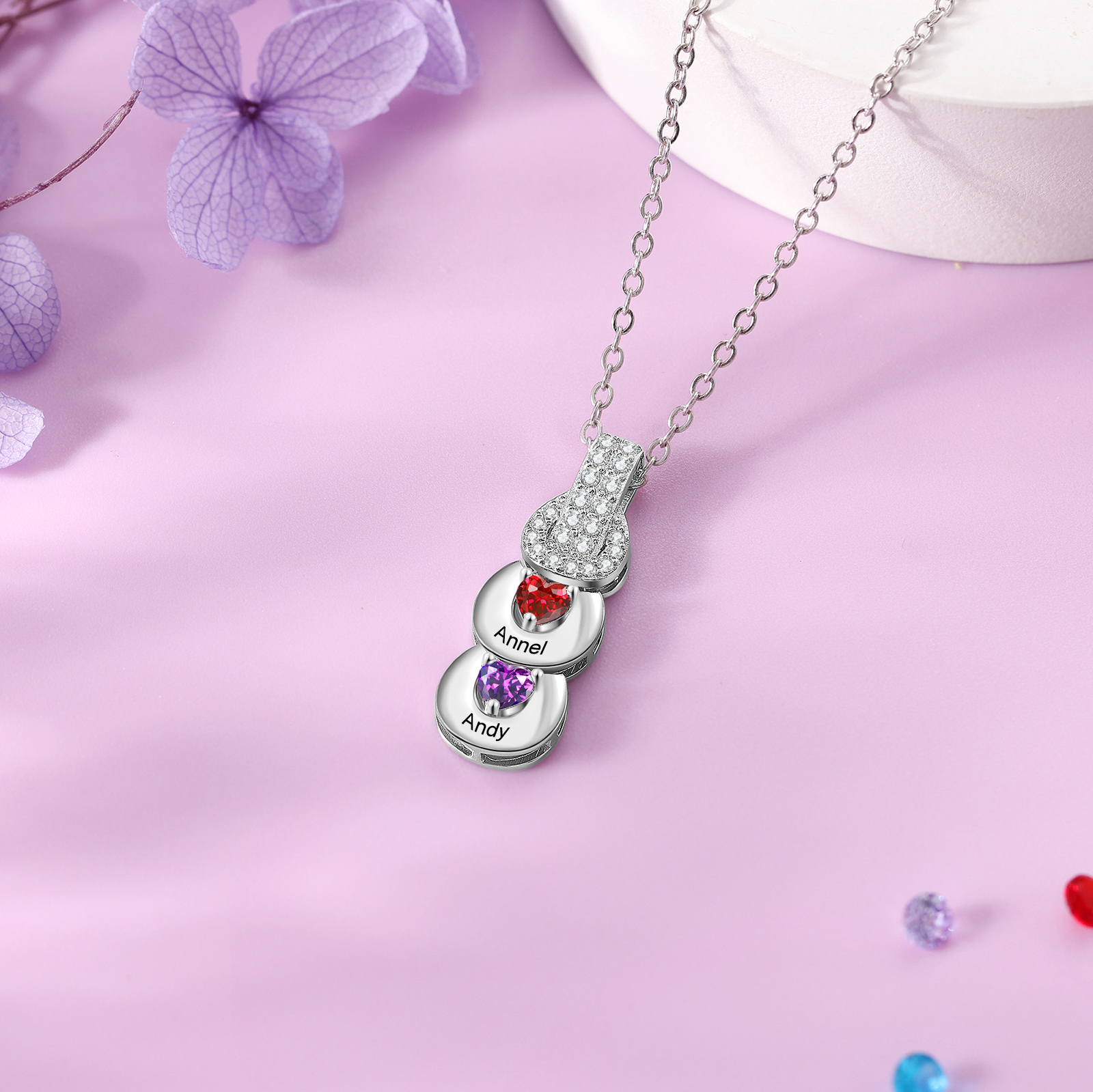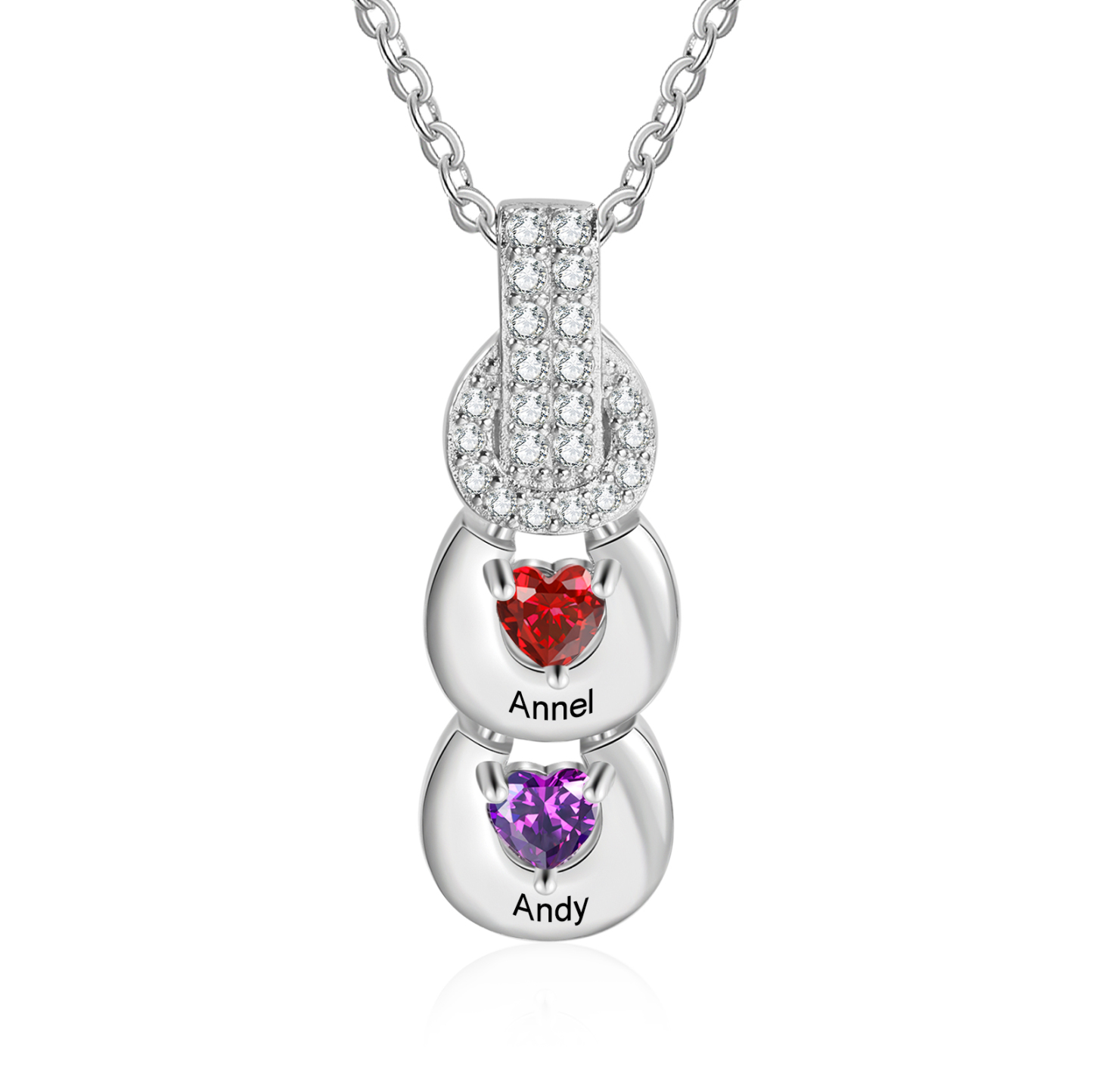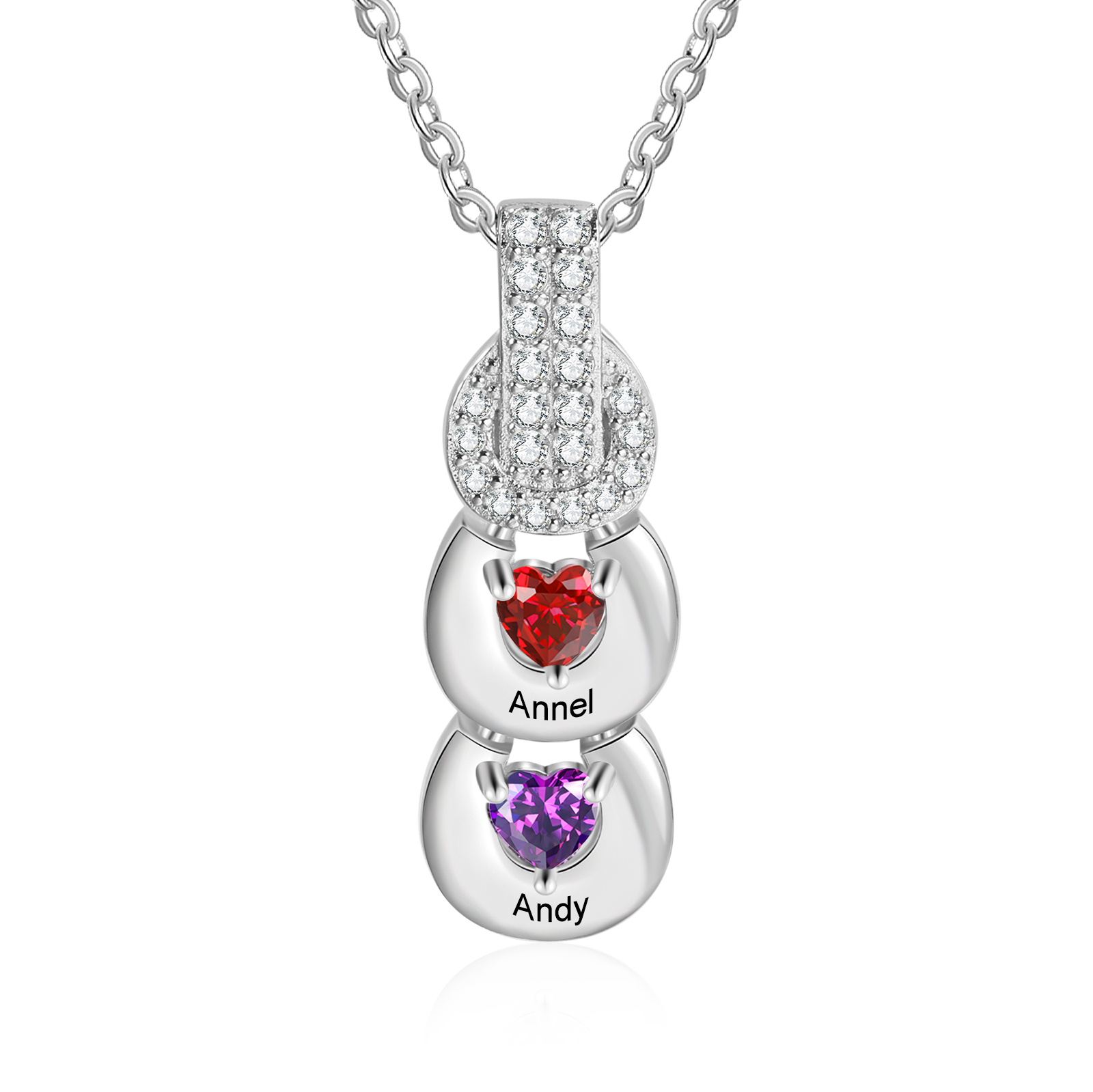 Custom Family Necklace Cascading Pendant with 2 Birthstones Engraving 2 Names Gifts for Her