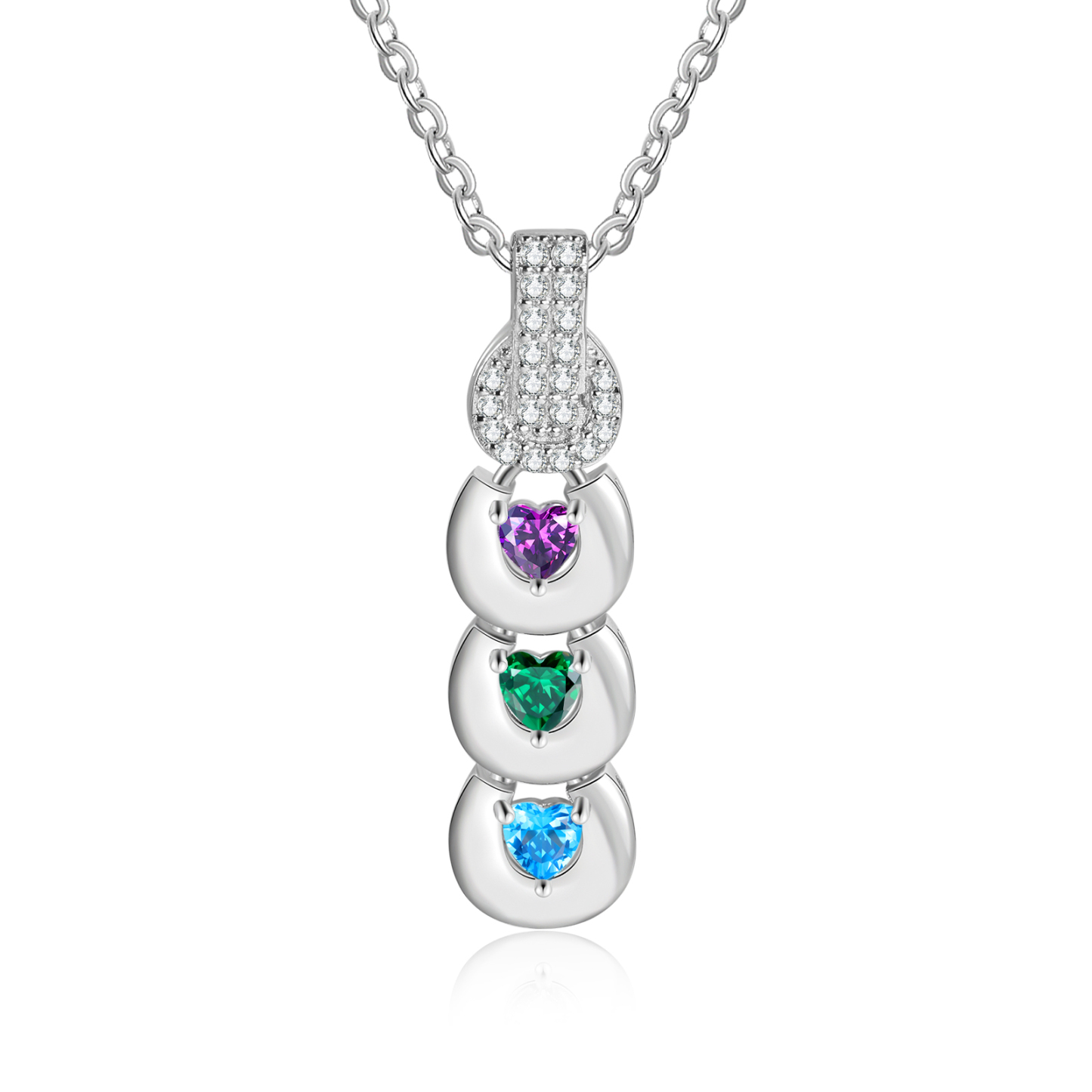 Custom Family Necklace Cascading Pendant with 3 Birthstones Engraving 3 Names Gifts for Her