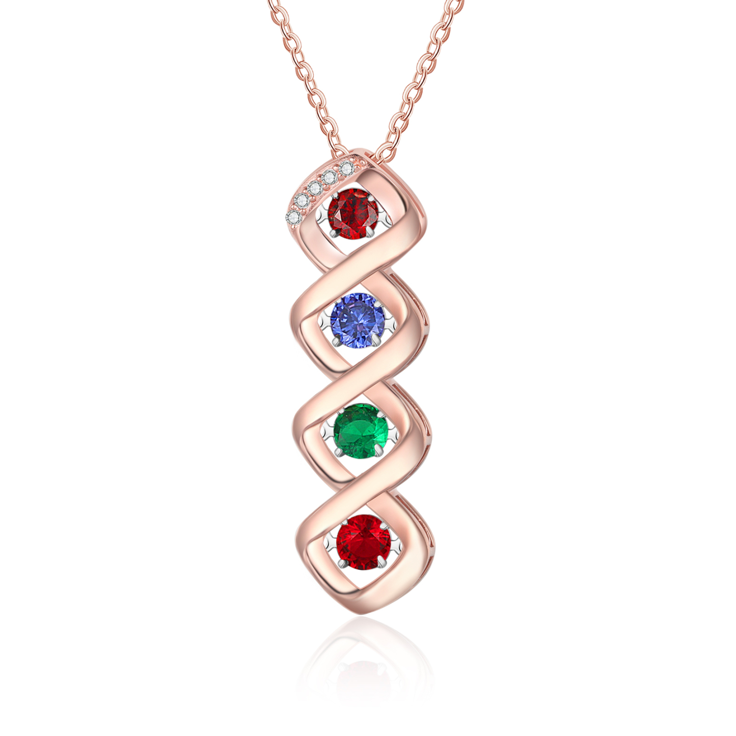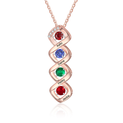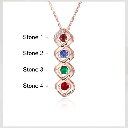 Custom Family Necklace with 4 Birthstones Engraving Names Dancing Stone Necklace