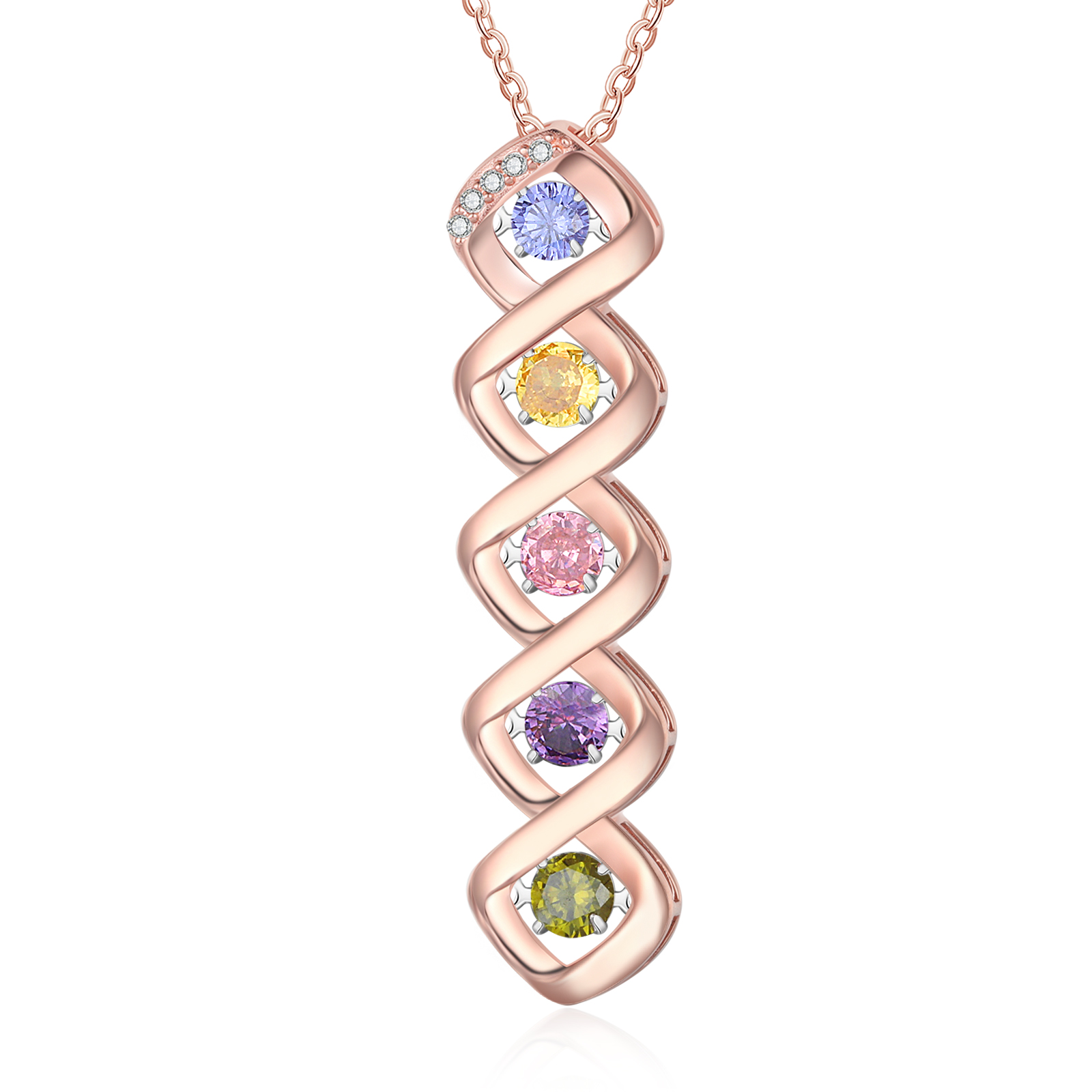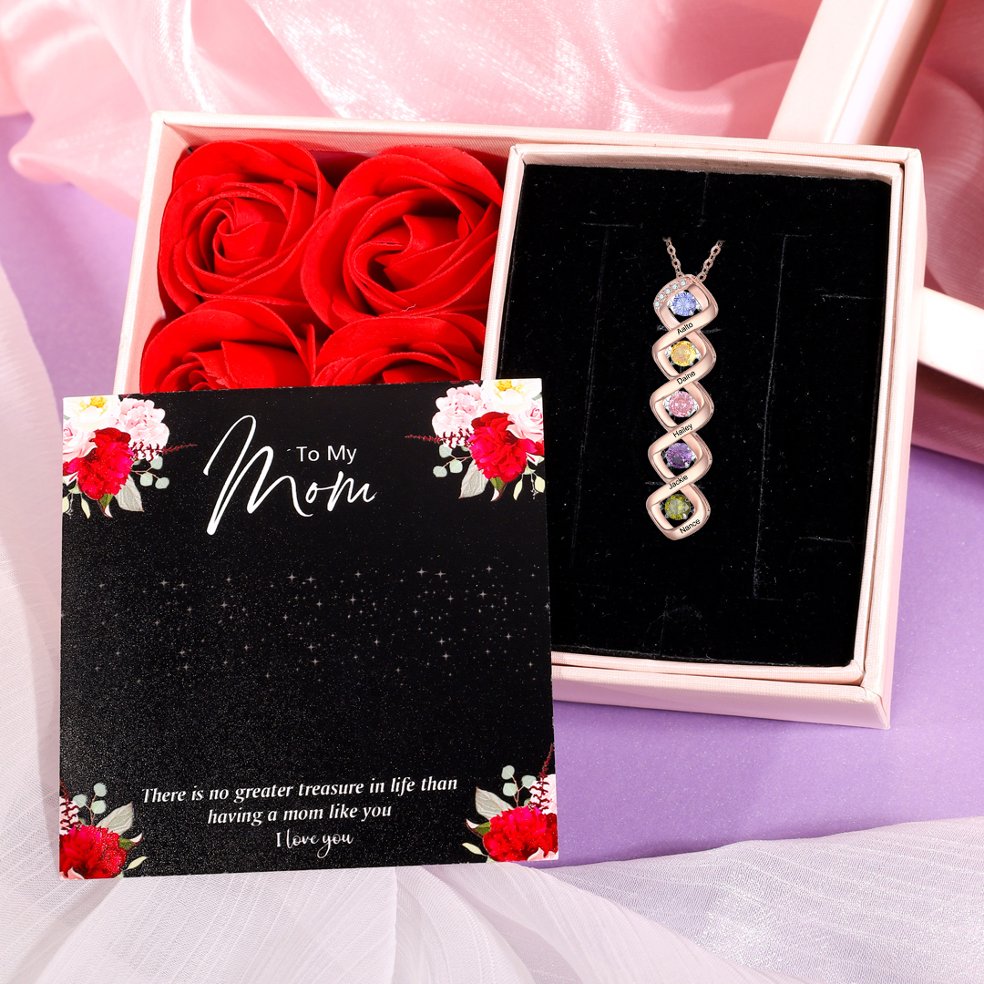 Custom Family Necklace With 5 Birthstones Set With Rose Gift Box Engraving Names Dancing Stone Necklace