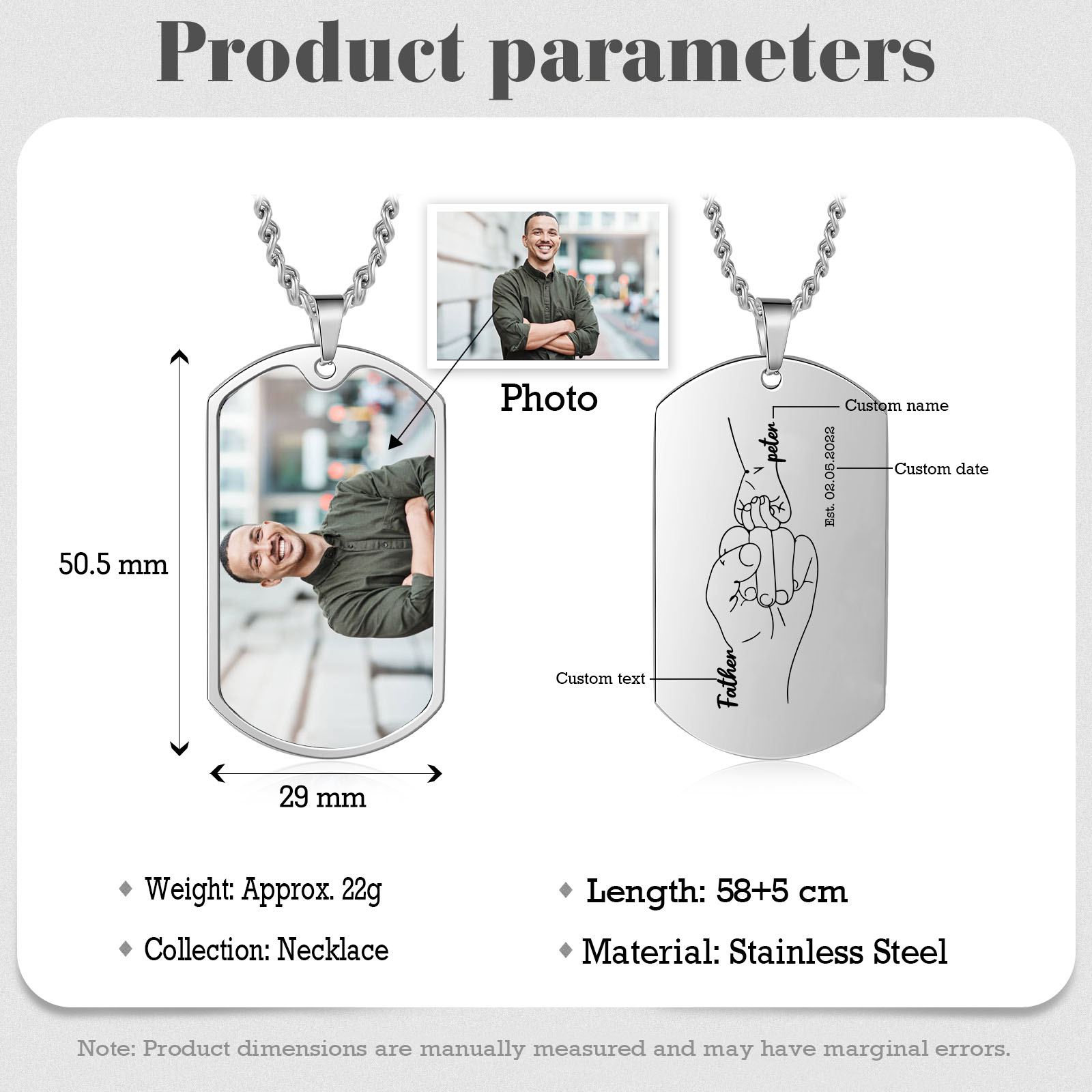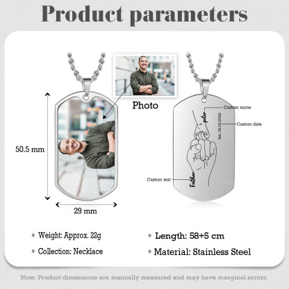 Custom Fist Bump Family Necklace with 1 Kid's Names Personalized Photo Dog Tag Necklace Father's Day Gifts
