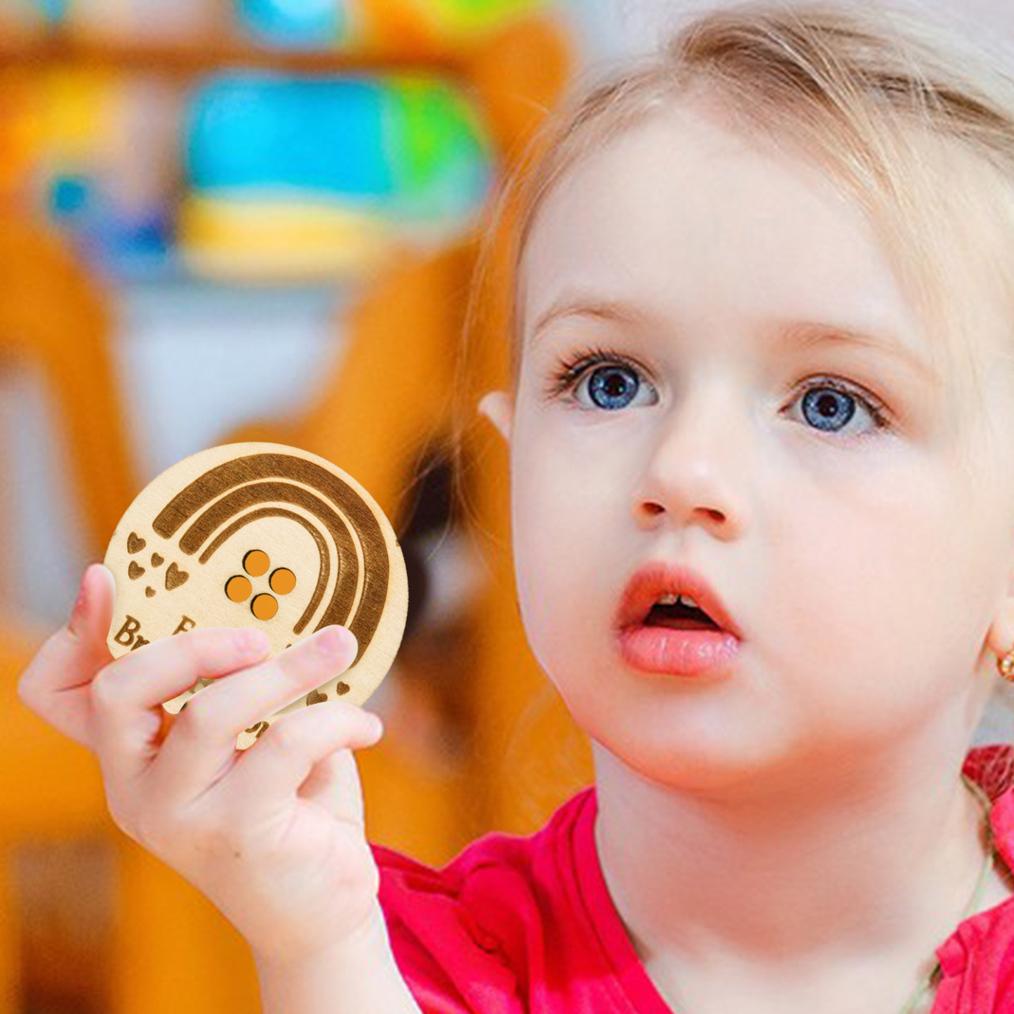 The perfect back-to-school gift for your child! Crafted from high-quality wood and boasting a vibrant, eye-catching array of colors in a rainbow design, this button is both sturdy and visually stunning. With dimensions measuring 5*5cm, it's the ideal size for children to hold, use, and cherish.