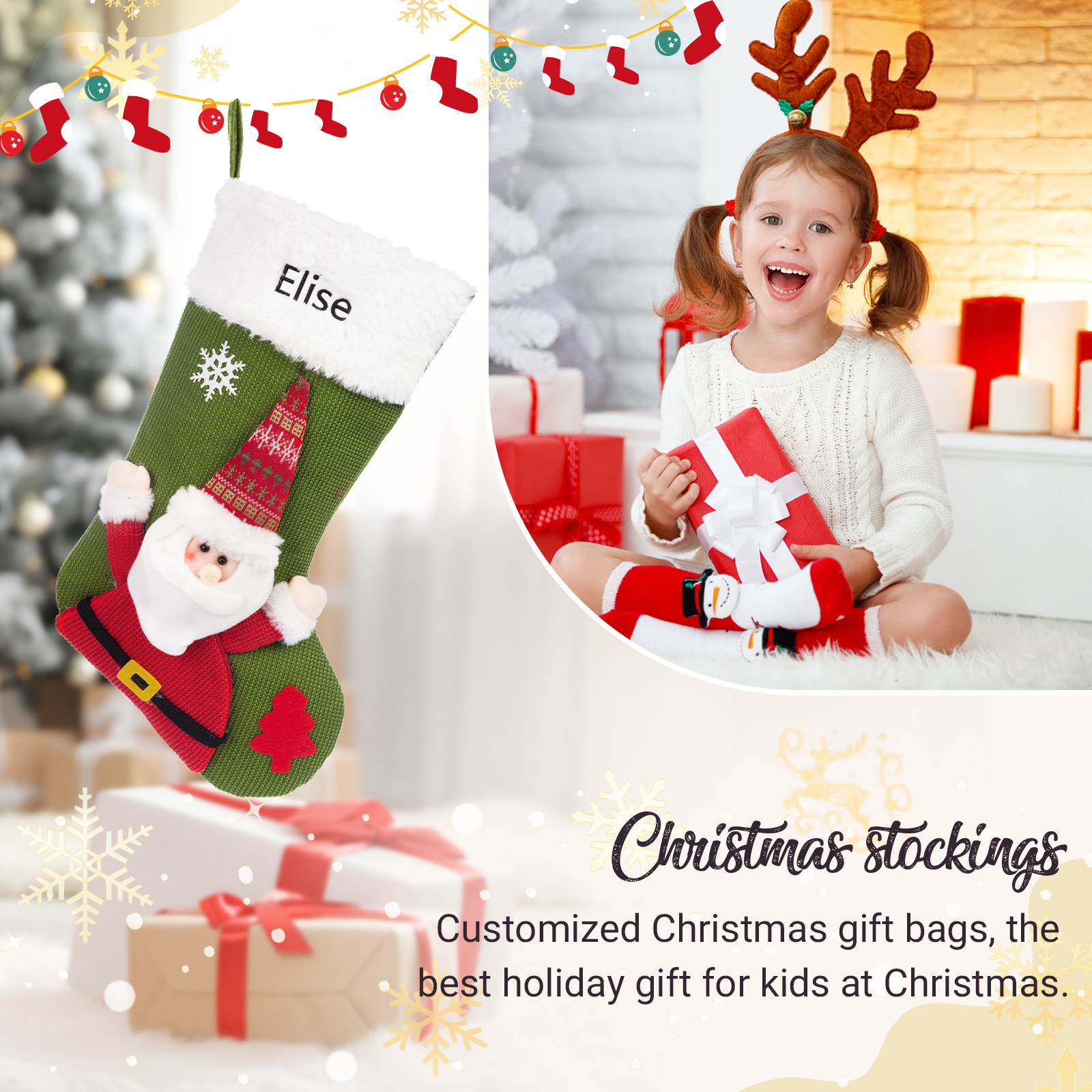 These Christmas stockings with Initial Embroidered can be used to hold gifts or treats, candies and other snacks. It can be a family gift to add more fun to your Christmas party!