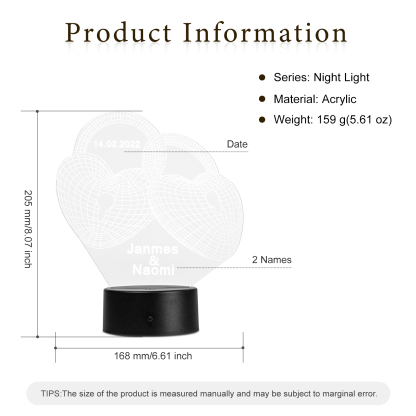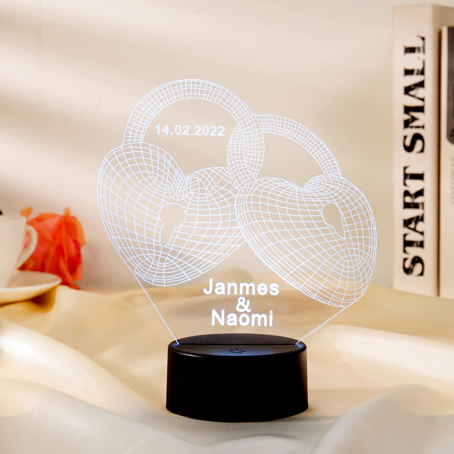 Custom 3D Love Lock Night Light With Name LED Lamp Gifts For Couple