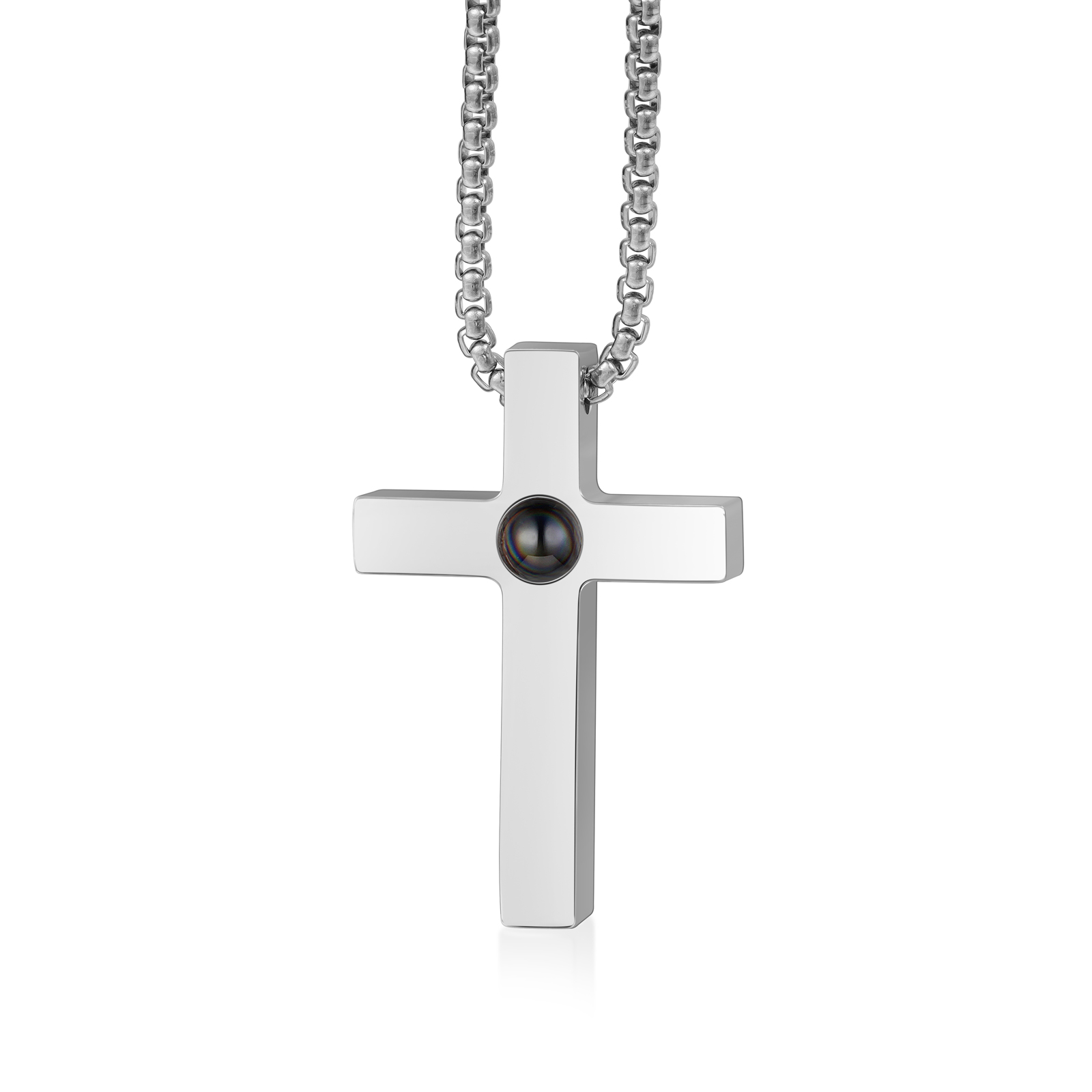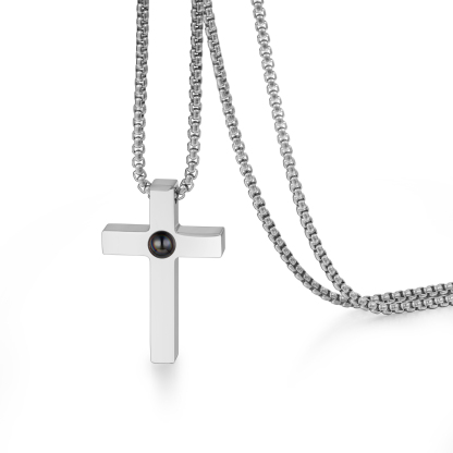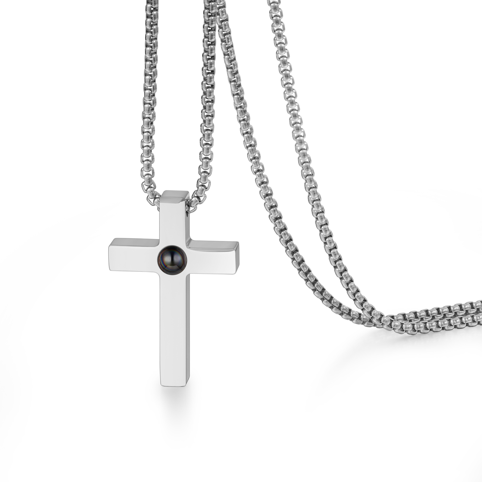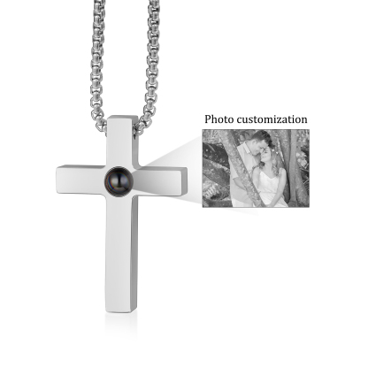 Custom Photo Cross Projection Necklace, Customized Men Necklace Couple Gift