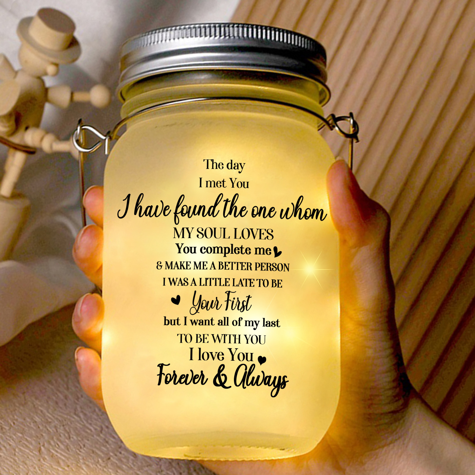 Keywords: personalized mason jar light, custom photo jar, romantic gift for couples, solar LED love lamp, anniversary gift for wife, sentimental gift for boyfriend, unique engagement present, bedroom night light gift