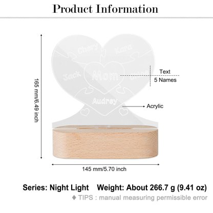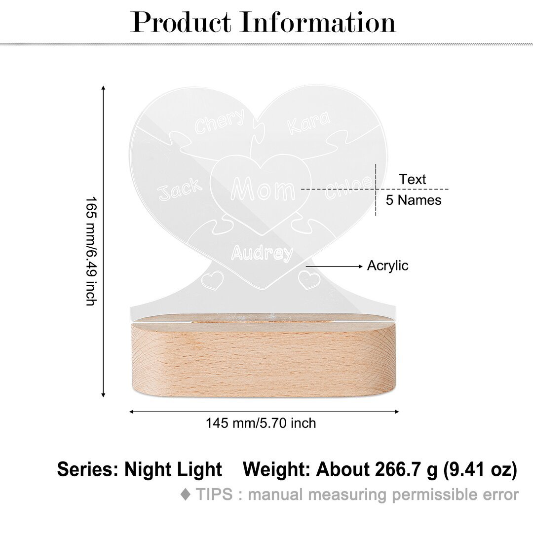 Custom Puzzle Night Light Engraved 5 Names Home Decoration Family Gifts