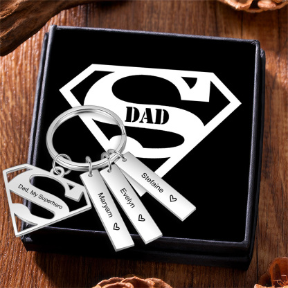 3 Names Customized Keychain With Card Gift Box Set Gift For Dad