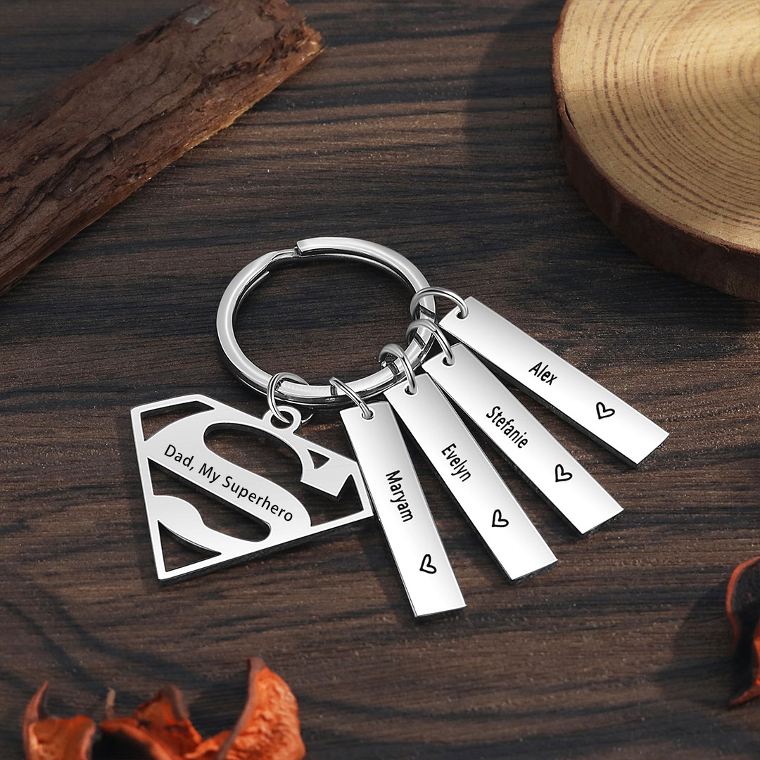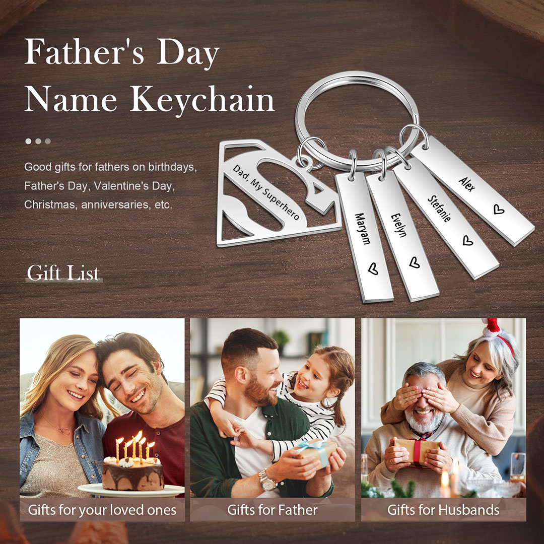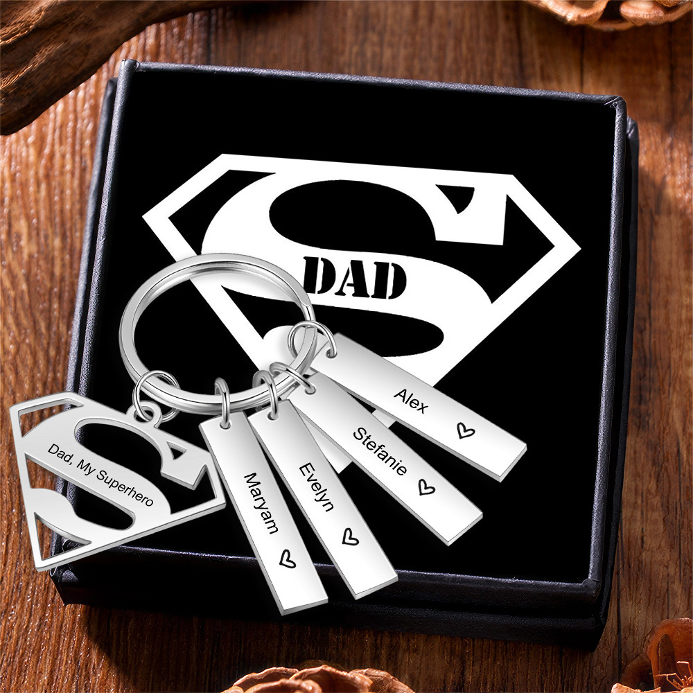 4 Names Customized Keychain With Card Gift Box Set Gift For Dad
