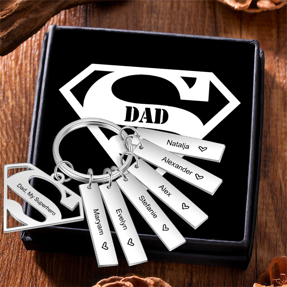 6 Names Customized Keychain With Card Gift Box Set Gift For Dad