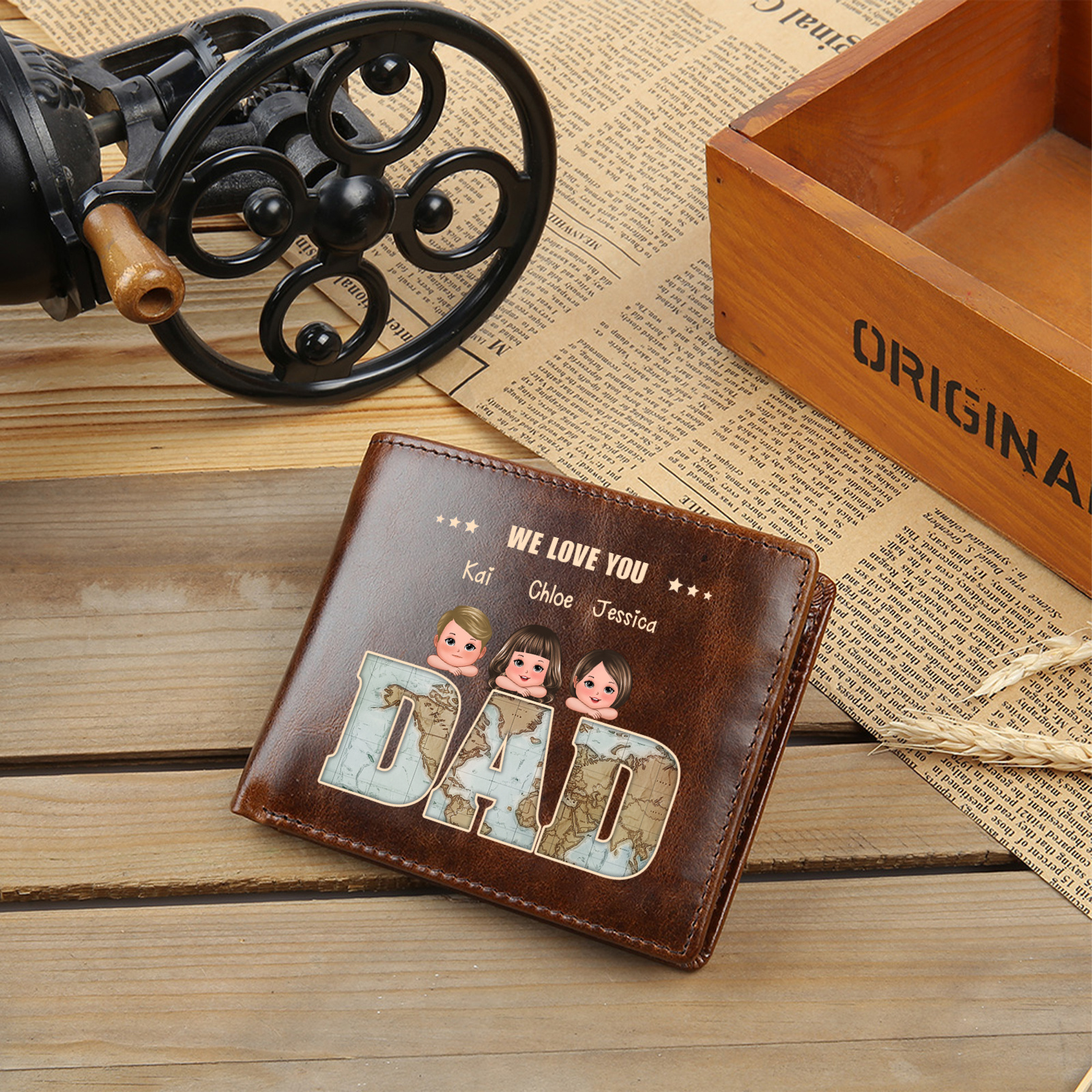 Keywords: personalized dad wallet, custom name wallet for dad, Father’s Day gift, sentimental gift for him, practical men’s wallet, leather bifold wallet, coin pocket wallet, gift for grandpa