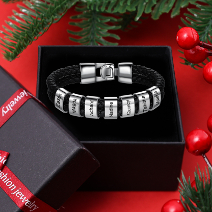 7 Names-Personalized Braided Leather Bracelet Set With Gift Box-Custom Men's Bracelet Engraved 7 Names for Him